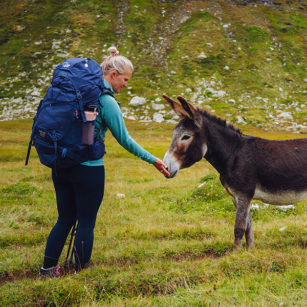 Met de wandelstokken in de aanslag beginnen we aan de afdaling, stijl en pittig. We zoeken ons een weg door diepe geulen, die door de regen ontstaan zijn. Geleidelijk loopt de afdaling over in het weidse plateau van Piano dei Canali waar we enthousiast worden begroet door een kudde muilezels. Hopend dat we iets lekkers op zak hebben zetten ze hier en daar een hapje in onze bagage. Na een aai over de kop lopen we verder richting Acquacalda, een ecologisch centrum, aan de zuidkant van de Lukmanierpas in de Valle di Blenio. Weer een beschermd gebied dat het Pro Natura Centre genoemd wordt. En we snappen meteen waarom, wanneer we door een betoverend bos van bergdennen, lariksen en verschillende moerasgebieden stappen. We zijn moe, voelen de kilometers in de benen, maar vinden in dit bos de kracht om nog even door te zetten. Nadat we de beek Brenno zijn overgestoken komen we na een lange dag eindelijk aan bij onze derde accommodatie, het Centro pro Natura Lucomagno (1750m).