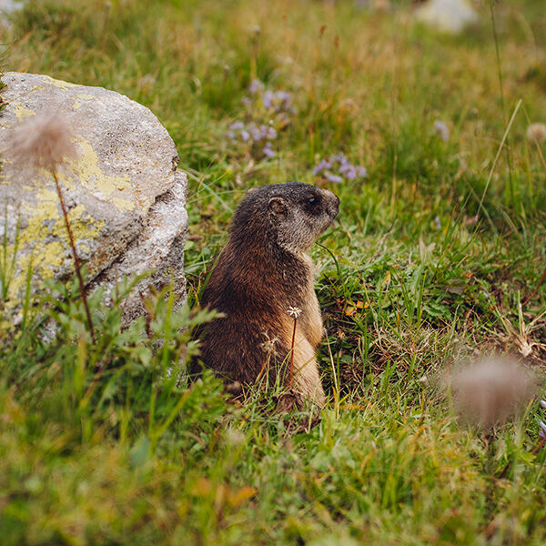 We zwaaien de allervriendelijkste huttenwaard Lucca uit en lopen rechtsom via het bospad langs Lago Ritom. Na ongeveer een half uurtje volgen we de gele pijlen rechtsaf omhoog die ons verder het bos in leiden. We snijden dus het lusje dat ons langs Capanna Cadagno zou brengen af. Na een korte klim door het bos omhoog zien we Capanna Cadagno en het naastgelegen meer links van ons liggen. We slaan rechtsaf en volgen de kronkelende weg door het groene landschap omhoog. Fluitsignalen verraden de aanwezigheid van bergmarmotten, waarvan we er eentje op een grote steen in de zon zien zitten. Ik vind dit stuk prima te doen. De stijging gaat geleidelijker dan de eerste dag en mijn benen voelen goed. Rond lunchtijd bereiken we de pas, Passo delle Columbe (2380m). De helft van de dag zit erop! We rusten even uit bij het meertje Lago dei Campanitt en als we nog even achterom kijken zien we in de verte de besneeuwde toppen van de 4000 meter hoge Lauteraarhorn schitteren. Dit is het moment om de Pioravallei achter ons te laten.