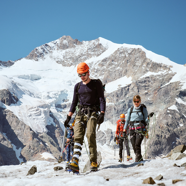 De basiscursus is de eerste stap in je alpiene klimcarrière. Je oefent het bergwandelen en klimmen in rotsachtig terrein, het doorkruisen van sneeuwvelden en het lopen met stijgijzers. Eenmaal in de hut krijg je theorie over tochtplanning, oriëntatie en alpiene gevaren. Na deze cursus ken je de basisvaardigheden voor het maken van eenvoudige alpiene tochten en heb je je eerste stap als zelfstandig alpinist gemaakt!
