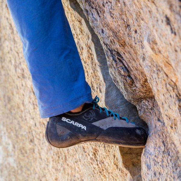 De Scarpa Generator, een schoen gespecialiseerd in het spleetklimmen.