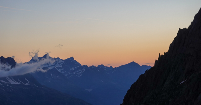 Voor ons verdwijnen onze teamgenoten (coach Bas en Maël, Jan en Folke) als mieren tussen de Franse touwgroepen. Laura maakt vaart en duikt er achteraan. Ze vindt een eenvoudigere route dan de Franse touwgroepen, maar inhalen lukt niet. Ik neem een moment om uit de gehaastheid van de route te stappen. Ik kijk om me heen en bewonder de eerste lichtstralen die 1500 meter lager op Chamonix vallen. Het uitzicht is adembenemend: het oranje ochtendlicht speelt met de schaduwen van granieten wanden om ons heen.