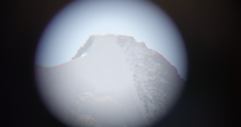 Klimmers spotten door de verrekijker vanuit basiskamp. Foto: Dennis HendrikxNet als met alles op expeditie is ook deze berg veel hoger en groter dan dat je vooraf denkt. Desalniettemin staan we rond de middag van dag drie op de top! Onze camera is op dit moment helaas leeg. Gelukkig kunnen we een bericht met de Garmin Inreach versturen, waardoor we de exacte hoogte en coördinaten van de top weten. De berg heeft nog geen naam, want hij is zeer waarschijnlijk nog nooit eerder beklommen, en we besluiten hem ‘Pik Luis’ te noemen, naar een overleden klimvriend en -mentor van Michiel.