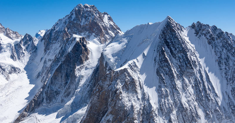 Zicht op de sneeuw- en ijsgraat.