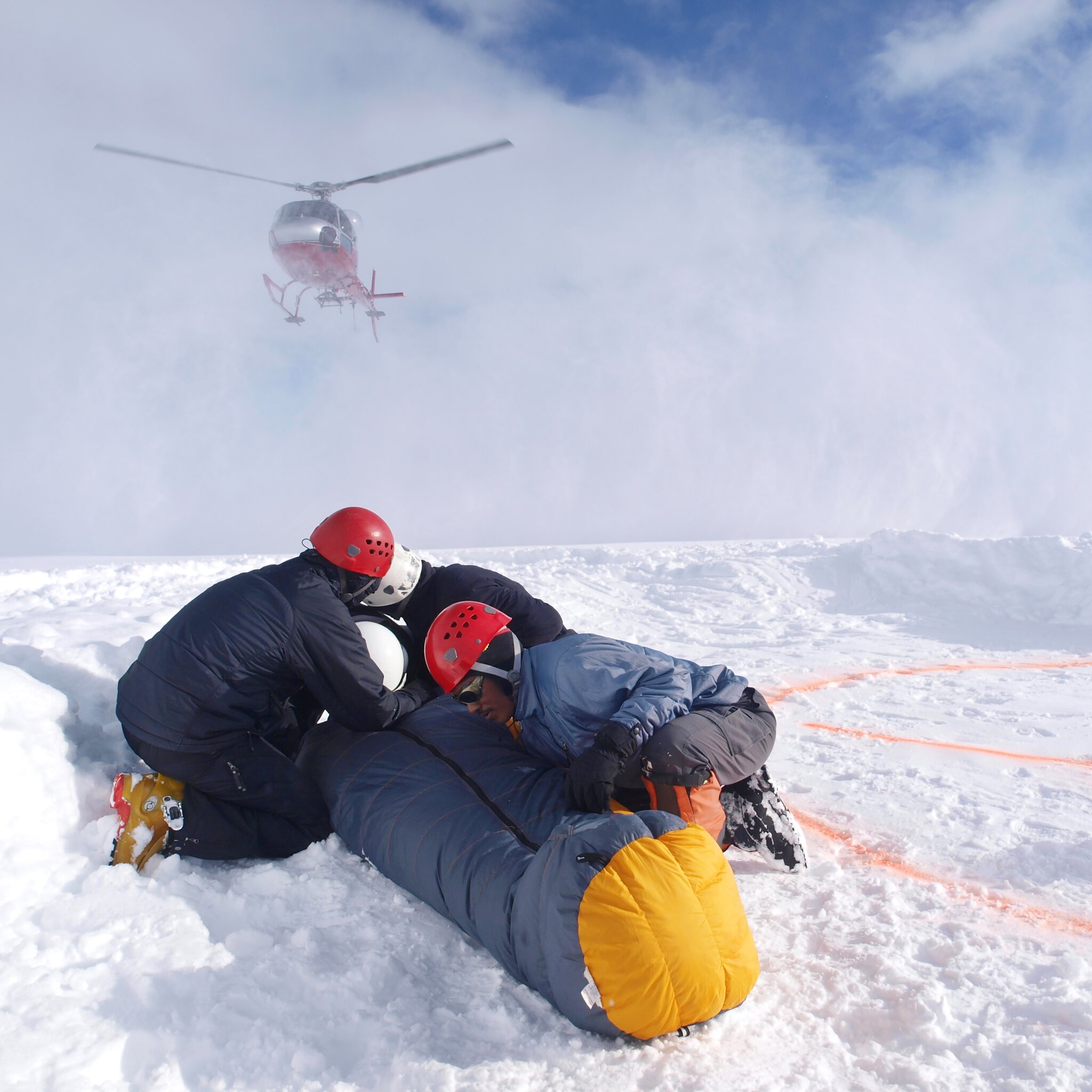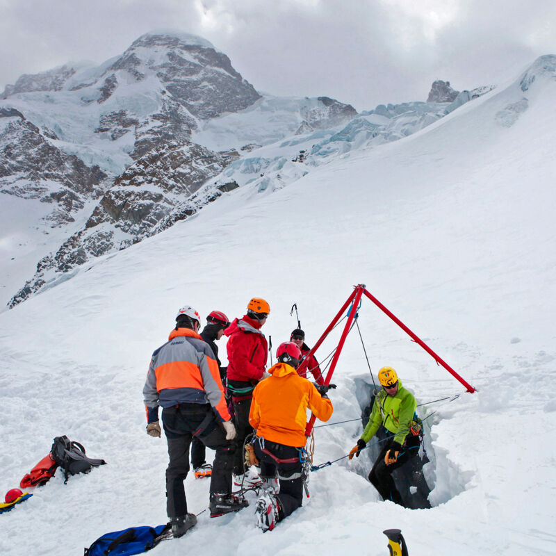 Mocht het niet lukken om zelfstandig uit de spleet te komen, dan kun je rekenen op reddingsdiensten die tot het uiterste gaan om je te helpen. Bekijk bijvoorbeeld deze reddingsacties op de Schwärze-gletsjer boven Zermatt of op de Vallée Blanche bij Chamonix. Niet zelden worden mensen pas na lange tijd uit hun miserabele positie bevrijd, zoals hier (na 15 uur) op Denali. In de Alpen zal in de meeste gevallen een speciaal ontwikkelde driepoot ingezet worden om in de spleet af te dalen. Dat kan natuurlijk alleen wanneer duidelijk is waar het slachtoffer zich bevindt. Ga daarom niet alleen op pad, behalve als je zoals Jost Kobusch volledig zelfredzaam bent. Niet iedereen kan immers op zoveel geluk vertrouwen als de man die een Spaltensturz op de Feegletsjer enkel overleefde dankzij de hulp van zijn trouwe viervoeter. Hoop heeft sowieso geen plek in risicomanagement. Beter zorg je voor een goede voorbereiding en ga je fit en geoefend op pad. Maar, laten we vooral niet vergeten: ook bergredders vermaken zich in hun vrije tijd graag met gletsjerskiën. Op eigen kracht omhoog vellen, op de top genieten van het uitzicht en daarna met vrienden samen door de majestueuze bergwereld naar beneden suizen... dat is simpelweg subliem!
