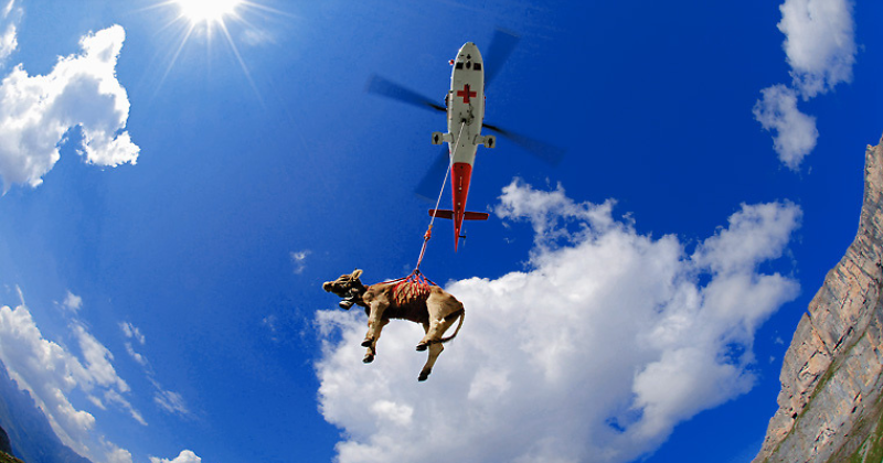 Boeren zijn in Zwitserland verzekerd voor het evacueren van gewond vee. Foto: Rega.