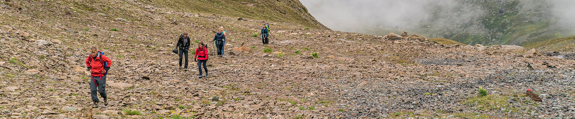 We vonden een leuk rondje in de Stubaier Alpen en het Sellraintal. Een gebied met veel kale rotstorens dat niet voor niets de Dolomieten van Tirol genoemd wordt. Vier dagen alles op je rug, maar geen overdreven lange dagtochten. We overnachten in drie gezellige hutten: de Potsdamer Hütte, de Adolf Pichler Hütte en de Birgitzköpfl Hütte. De eerste met een huttenwirt die al meer dan 25 jaar chef van de bergredding ter plaatse is. In de tweede hut zijn moeder en dochter de hele zomer boven en de laatste heeft veel dagjesmensen, zodat het daar pas ’s avonds weer enigszins tot rust komt.
