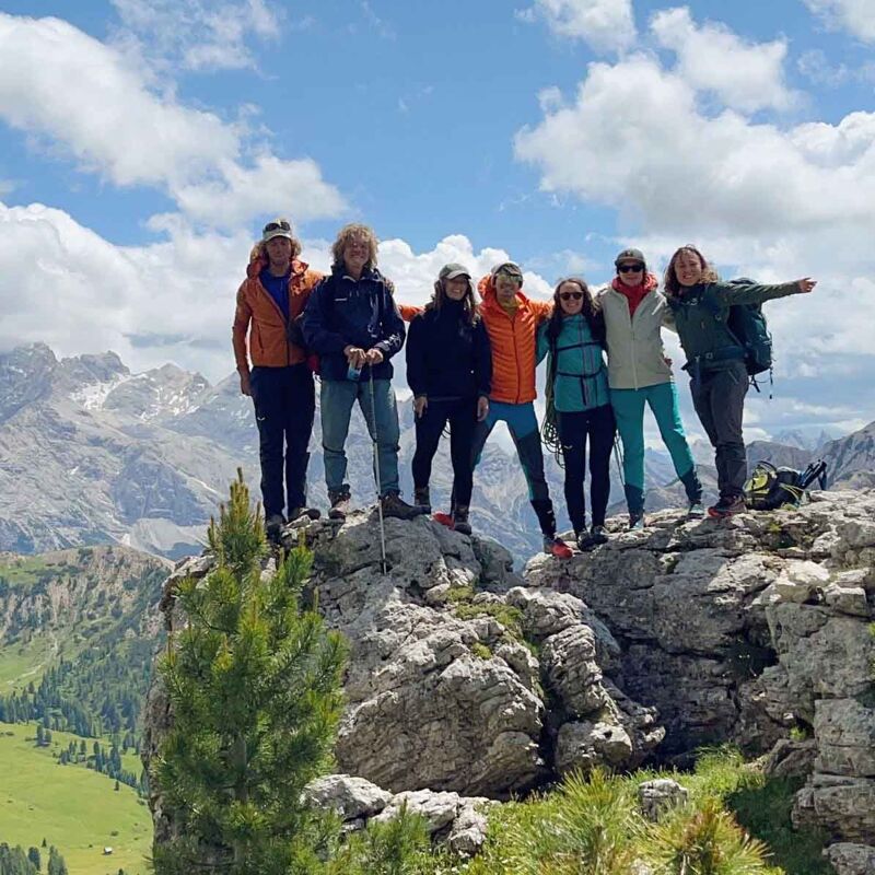 Onze klimgids vertelt ons veel over zijn ervaringen en beantwoordt onze vele vragen. Hij kent het gebied als geen ander, waardoor we hem oneindig veel tips kunnen vragen over zowel klimmen als alpine tochten, en over de omringende gebieden in de Dolomieten. Dat maakt de cursus nog waardevoller dan hij al is, om met zo’n ervaren klimmer en alpinist op pad te zijn. We hebben deze drie dagen veel geleerd, gelachen en elkaar goed leren kennen. We eindigen de cursus met een voldaan gevoel, geven elkaar een knuffel en vertrekken met een nog grotere klimlust.