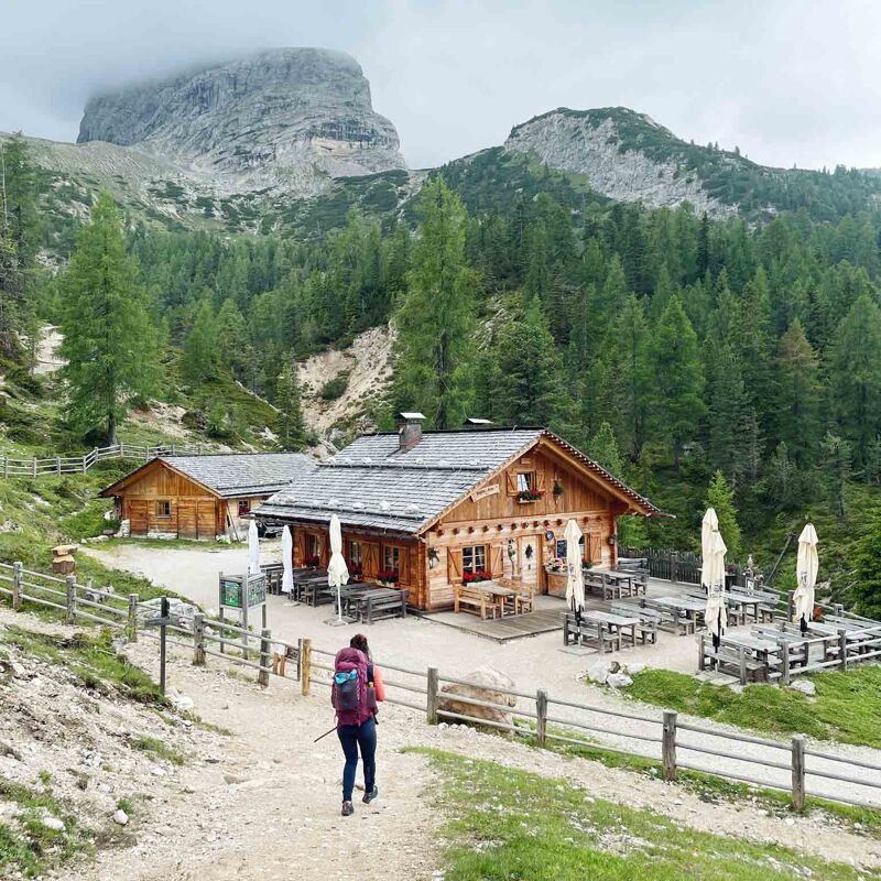 Na alle training gaan we richting de Malga Stolla Alm, waar we de komende nachten verblijven. De kleine, houten hut bevindt zich in een dal. We parkeren de auto bij Berggasthof Plätzwiese en lopen vervolgens drie kwartier door groene weides, kleurrijke bloemenvelden en met uitzicht op prachtige bergen richting de hut. Daar worden we verwelkomd met heerlijke schnaps. We krijgen grote Salewa-tenten en kiezen een mooie plek uit naast de hut. Na een avond vol gezelligheid en een heerlijk diner kruipen we rozig en voldaan in onze slaapzakken.