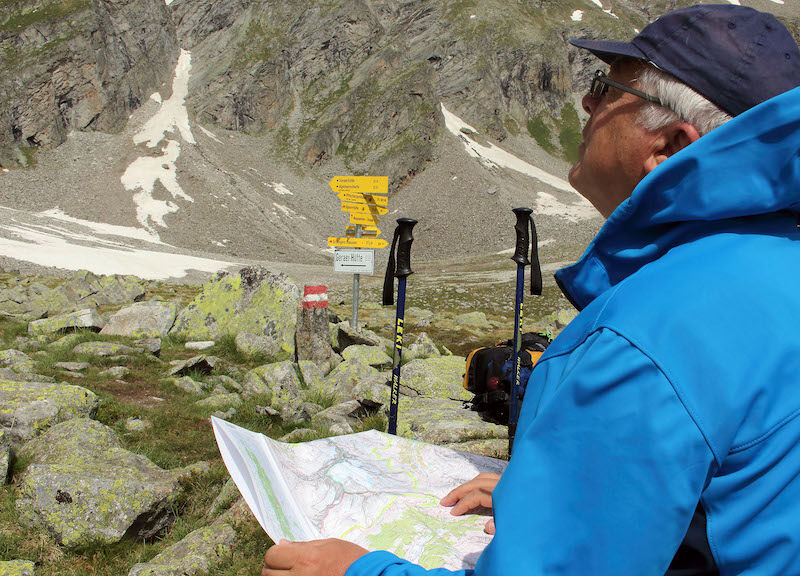 ‘Bergprofessor’ Habeler, in 1999 kreeg hij die titel vanwege zijn grote verdiensten voor de bergsport, is trots op zijn ronde. De route loopt door het gebied waar de jonge Peter de bergen leerde kennen. De groene alpenweides, de ruige kale rotsen van de Olperer, de hoogste berg dicht tegen de grens met Italië. De sneeuw en het ijs bij Hintertux, waar ook ’s zomers op de gletsjer geskied wordt. De oneindig lange trajecten met rotsblokken en stenen. Het is op een aantal plaatsen een hochalpiene route, waar je trittsicher en schwindelfrei moet zijn. Ofwel: stevig in je schoenen staan, ook op smalle richels en paadjes en geen last hebben van de diepte onder je. Op een paar plaatsen helpen laddertjes en staalkabels je de helling goed op en af te komen.