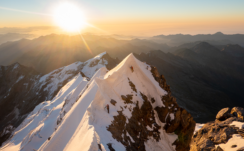 Een prachtige zonsopkomst op de Cresta Signal - een ervaring om nooit te vergeten. Ik klom deze route met Expeditie Academie teamleden Anniek, Jeffrey en Martin. De beklimming startte op 1500m, eindigde op 4500m en liep deels door technisch terrein. Foto: Bas Visscher