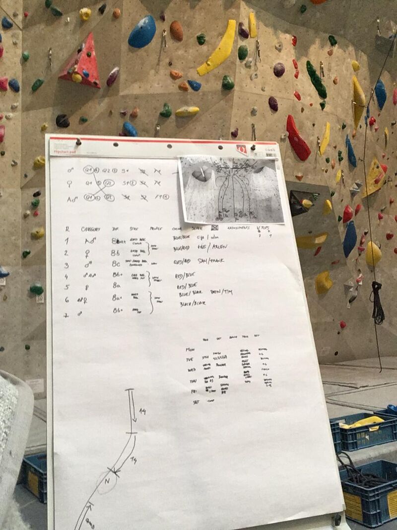 Die laatste boodschap werd vaak herhaald, deze week, vertelt hij. “Jullie hebben in Nederland veel boulderhallen, dus jullie bouwers zijn ervaren in het maken van ingewikkelde, harde of esthetische boulders. Dat is te gek, maar voor lead-klimroutes op internationaal wedstrijdniveau is die stijl van klimmen wat minder geschikt. Bouwers denken soms ten onrechte dat een route van begin tot eind, indrukwekkend en complex moet zijn. Dan bouwen ze feitelijk een toffe boulder, bovenop een toffe boulder, bovenop een toffe boulder – van crux-pas naar crux-pas. Dat is voor klimmers niet vol te houden, dus ik leer ze te bouwen met iets meer flow.”