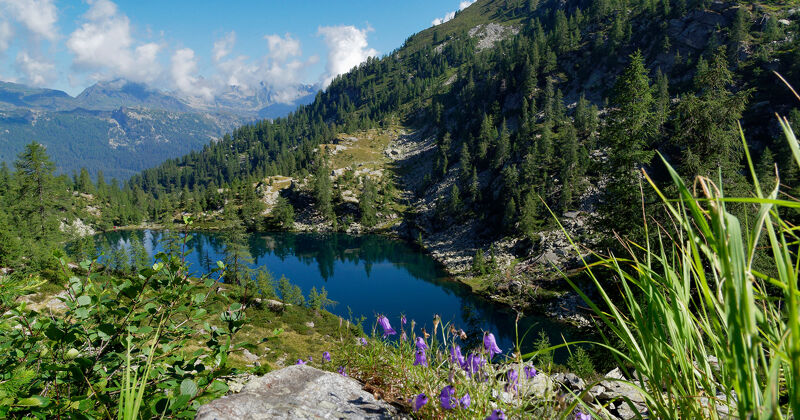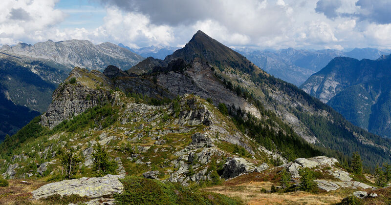 Deze etappe staat helemaal in het teken van flora. Je wandelt van de uitgestrekte weiden van de Bosco Gurin‑vallei naar het moerasgebied van Chummuheij, langs bleke korstmossen en de intensere tinten van heide, rododendron en bosbessenstruiken. Rond de Quadrella‑pas markeren kleine groepjes dwergbomen de overgang naar een bebost gebied. Aan de kant van Valle di Campo trekt een prachtig lariksbos je het groen in. Omdat de etappe kort en eenvoudig is, kun je rustig de tijd nemen om de omgeving te bestuderen en misschien nieuwe soorten, insecten of vlinders te ontdekken. De dag eindigt in Cimalmotto, een charmant, eigenzinnig bergdorp van hout en steen. Een bezoek aan de kerk met haar beschilderde portiek is absoluut de moeite waard.