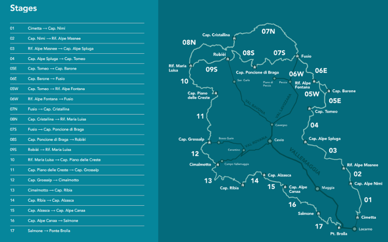 Op de website viaaltavallemaggia.ch, maar ook hierboven vind je bij elke etappe een beschrijving, de GPX en een downloadbare pdf met alle technische informatie.
