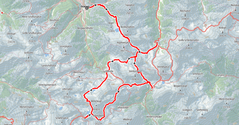 Als we op de parkeerplaats van Gramais onze rugzakken omzwaaien, voel ik de prettige zenuwen die bij het begin van een meerdaagse tocht horen. Het is de eerste dag van onze vierdaagse huttentocht boven het Lechtal. Dit dal in Tirol vormt de scheidingslijn tussen de Allgäuer en Lechtaler Alpen. Samen met een vriend trek ik van berghut naar berghut in de Lechtaler Alpen, gelegen ten zuidoosten van de rivier de Lech.