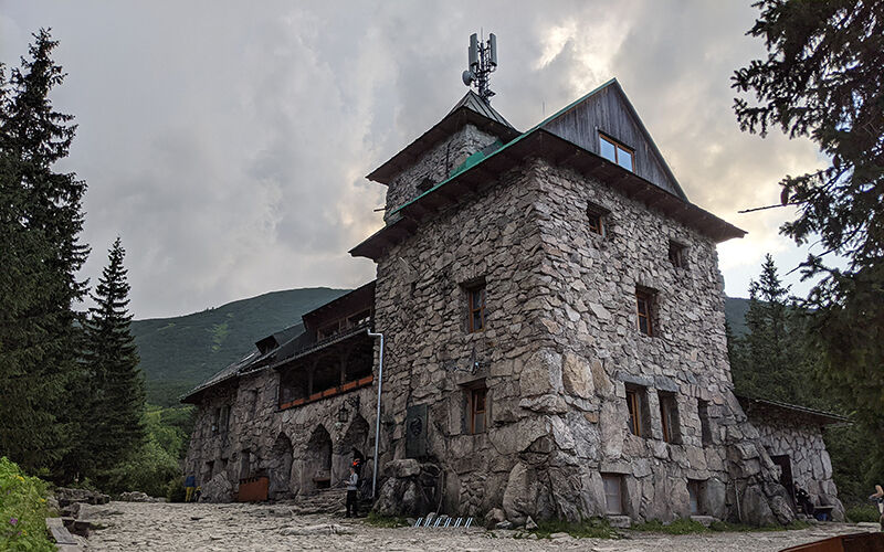 Na een uur bereiken we Shelter Ornak. De zon is gaan schijnen en op het terras bestellen we een kop koffie met lokale taart: szarlotka. Gelukkig geen beren op de weg vandaag. Een goed begin van de huttentocht!