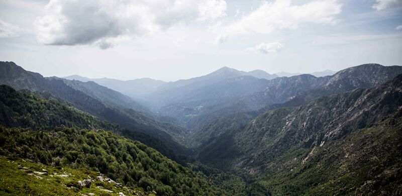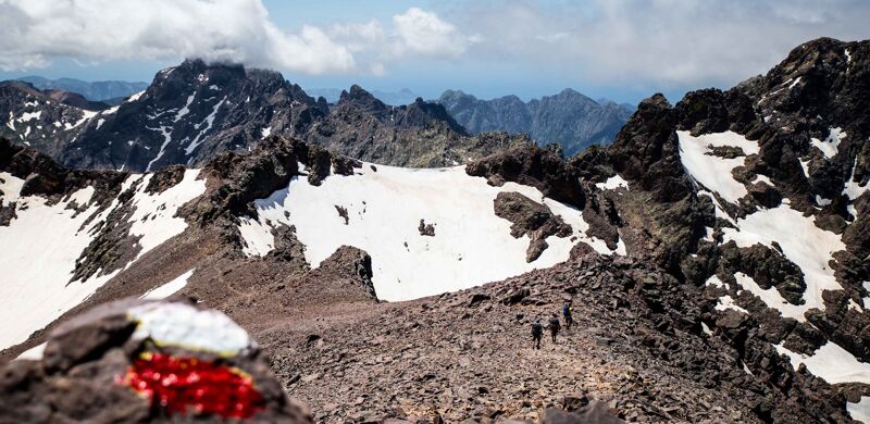 De hoogste en populairste etappe van de GR20 loopt van Refuge d’Ascu Stagnu naar Refuge de Tighjettu. Vanaf de Pointe des Éboulis (2607 m) heb je een prachtig uitzicht dat reikt tot aan de zee in het noorden en de piek van de Monte Cinto in het oosten.