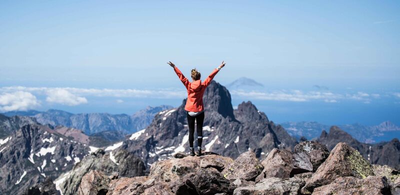 Vanaf daar is het nog anderhalf uur naar de top van de Monte Cinto (2706 meter). “Na enkele soms ietwat ingewikkelde klauterpartijen over rots, morene en oude sneeuwresten worden we verrast door het uitzicht vanaf Corsica’s hoogste piek en een enorm sterke, ijskoude wind”, schrijft Mirte. “Het is een vreemd gevoel: met uitzicht op zee, de zon in je gezicht en handschoenen aan, een berg beklimmen.”