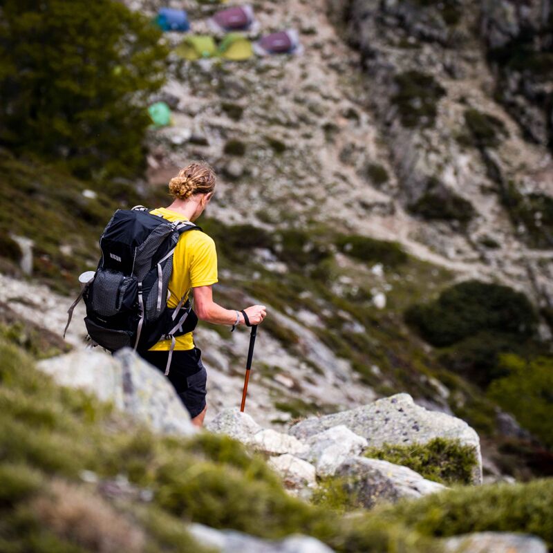 “Omdat de GR20 zo populair is, is het niet toegestaan te bivakkeren in het wild.” Daarom wordt de tent opgezet, vlakbij een primitieve hut. “Het eten is er over het algemeen duur, simpel en gelimiteerd, maar een koud biertje is er altijd te krijgen.”