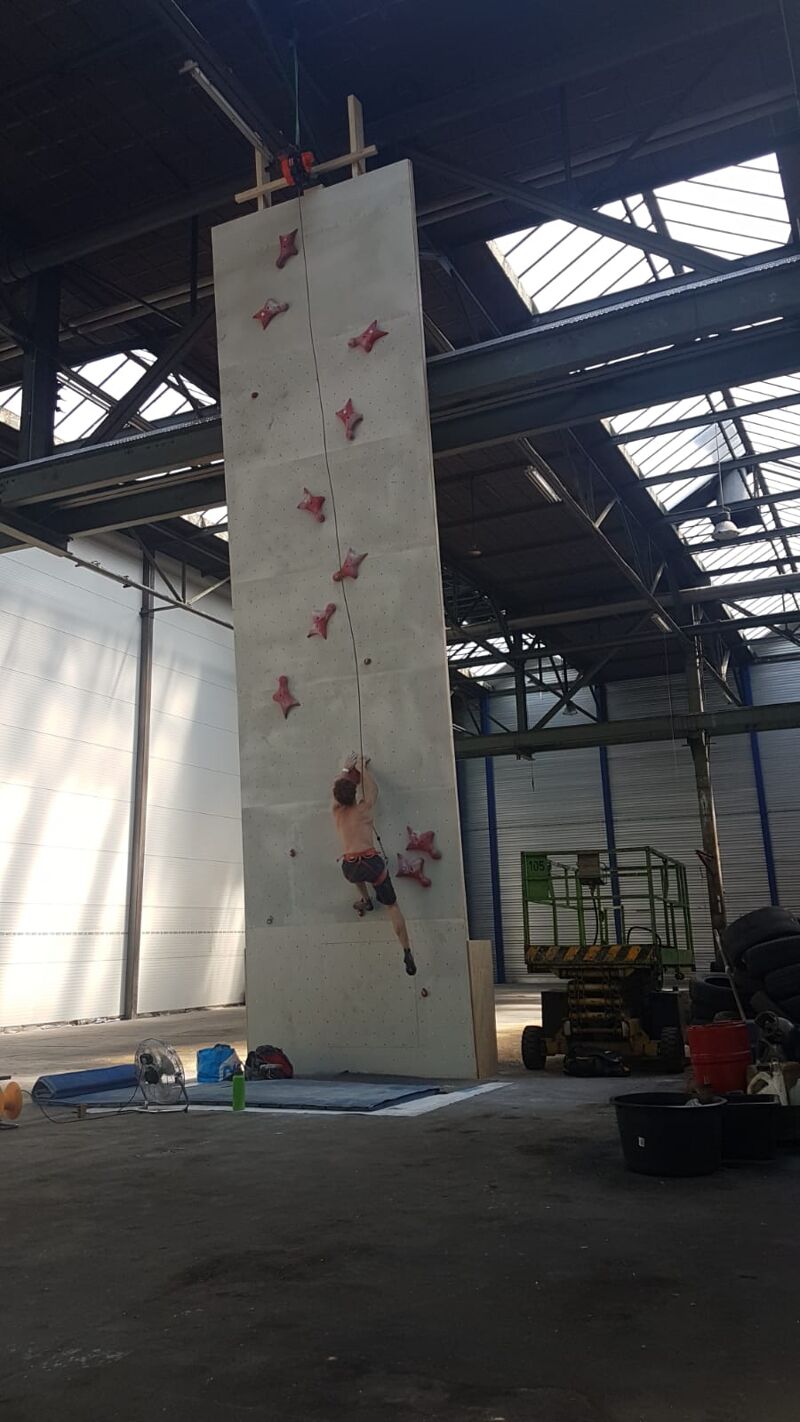 Om plaatsingskandidaat voor Tokio Tim Reuser te kunnen laten trainen in de speeddiscipline, heeft boulderhal Delfts Bleau afgelopen maand een speedwand gebouwd. Geen officiële weliswaar, want het lage dak in Delft maakt dat de wand er niet in zijn volledigheid kan staan. Dat maakt voor de Nederlands teamklimmer weinig uit. Hij is al in training!