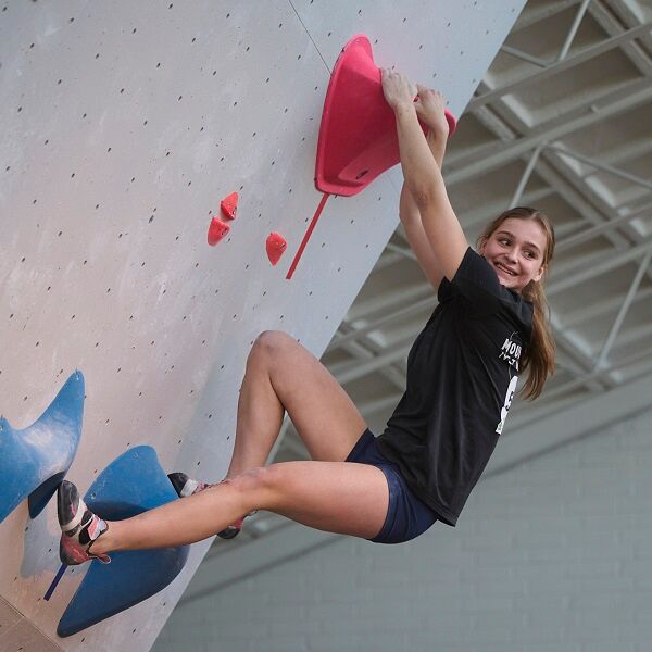 Traditioneel trok het Nederlands Jeugdkampioenschap Boulder, waar dit jaar 81 klimmers aan meededen, veel bekijks. Opa’s, oma’s, vaders en moeders, andere familie en vrienden, ze waren er allemaal in Monk bouldergym Hilversum. Nicolas Sarceno Chacon (12) was een van de klimmers die kon rekenen op een grote schare aan fans. Gedragen door de support topte hij de eerste drie boulders. In de vierde kwam hij ver, maar de eindgreep bereikte Nicolas niet. Geen probleem voor de klimmer van Team School of Rock; hij was al blij genoeg met zijn deelname. “Vorig jaar liep ik vlak voor het NJK een armblessure op bij een val uit de wand. Ik had super veel pijn.” Zijn glimlach verdwijnt even als hij eraan terugdenkt. Dan, weer terug bij zijn zilveren medaille: “Nu wilde ik lekker klimmen en niet laatste worden. Dat is gelukt.”