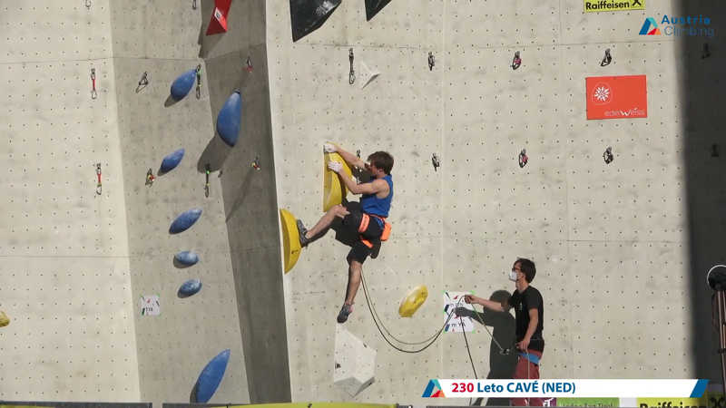 Tijdens de finale bleek nog eens dat het begin van de route gecontroleerd en rustig geklommen moest worden. Alle finalisten namen goed de tijd tijdens de eerste passen. Ook Leto klom berekenend en ging soepel richting de helft van de route. Daar ging het mis. Na het setje te hebben ingeklipt, probeerde de klimmer nog even wat magnesium te pakken voor goede grip, maar verloor de juiste spanning. Onverwacht gleed de Oranje atleet uit de gele sloper en balend liet hij zich zakken. Hij wist dat er meer in had gezeten, maar moest genoegen nemen met een 8e plek.