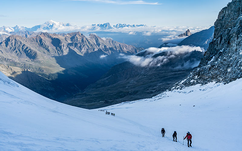 Een andere populaire route is de Haute Route, die zich uitstrekt van Chamonix naar Zermatt in Zwitserland.