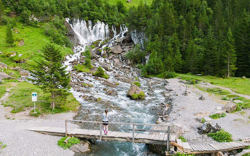 De vele watervallen zorgen voor bulderend geweld. De ontelbare bronnen van de Siebenbrünnen of de 600 meter hoge Engstligenwaterval zijn gewoon indrukwekkend. Eenmaal terug in het dal en in het dorp kun je nog heerlijk nagenieten en ontspannen in het historische Gruebibad in Adelboden.