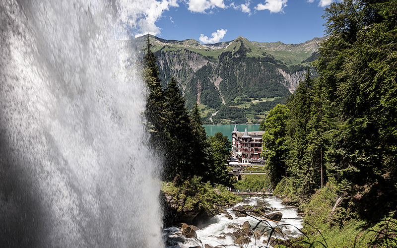 De oudste kabelspoorbaan van Europa brengt je 100 meter naar boven, naar het Grandhotel Griessbach. Vanaf het hotel wandel je in ca. 20 minuten naar de Griessbachwatervallen. Helemaal bijzonder is dat een deel van het pad zelfs achter een van de watervallen langs loopt. Eenmaal boven heb je een fantastisch uitzicht op het sprookjesachtige hotel, de Brienzersee en de Brienzergrat.