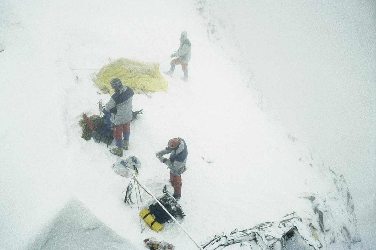 Het team vertrekt. Ton blijft achter in basiskamp vanwege ziekte. De overige teamleden moeten vanwege de vele sneeuwval bijna meteen al heupdiep sporen. Mathieu vindt het risico te groot en besluit terug te keren. Laat in de middag komen Dries, Robert en Rudolf in kamp 2 aan, hoewel het ze even duurt voordat ze de volledig ingesneeuwde tent terugvinden. Mathieu en Ton gaan een dag later alsnog omhoog. Het eerste team doet een poging tot kamp 3 te komen, maar loopt vast in de sneeuw. Ook Mathieu en Ton lukt het niet verder te komen. In een topbeklimming gelooft niemand meer. Maar het dure materiaal dat nog in kamp 3 ligt willen ze wel proberen te ‘redden’.