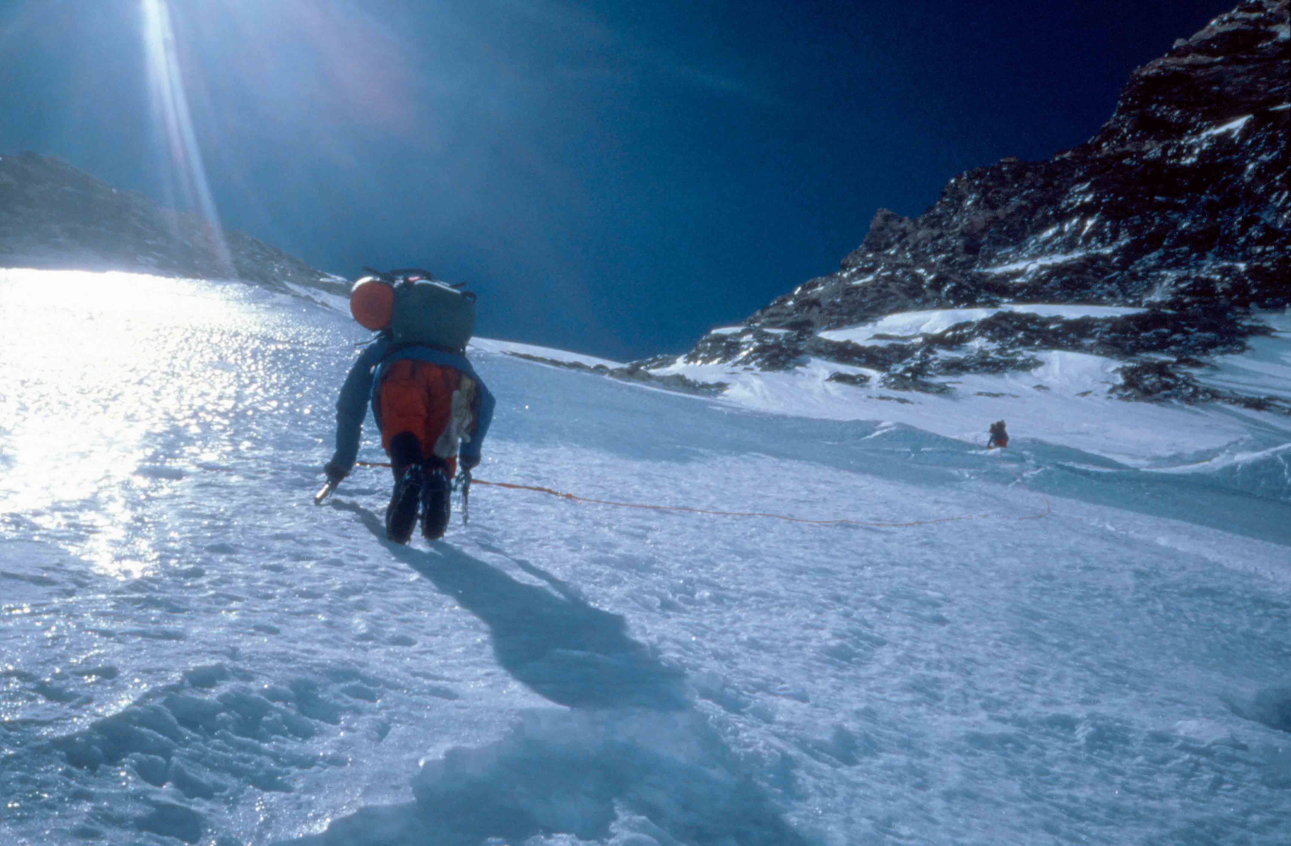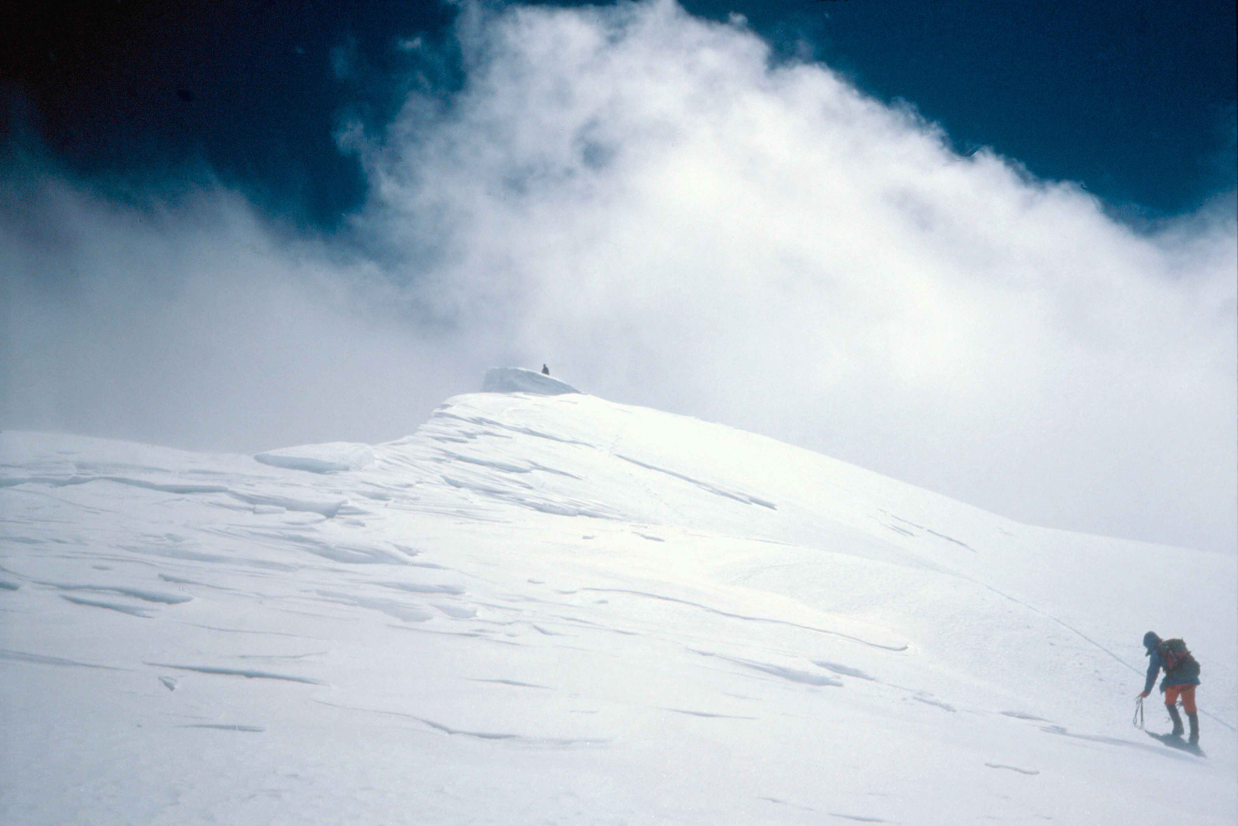 Hogerop bestond de noordwand uit hard, steil ijs tot 80° met weinig of geen sneeuw erop. Op 10 mei 1988 bereikten Gerda, Janka en Marjolein als eersten de oosttop. Het kostte ze ruim vijf uur om van Kamp III naar de oosttop te klimmen en drie uur om weer af te dalen. Frederike en Myra ontmoetten hen in Kamp III, waar ze die nacht alle vijf in het tweepersoonstentje slapen. De volgende dag klimmen ook Frederike en Myra naar de top. Beide ‘topdagen’ was het weer goed, maar zeer winderig. Na 12 mei werd het weer zo slecht dat het team de top waarschijnlijk niet hadden kunnen halen.