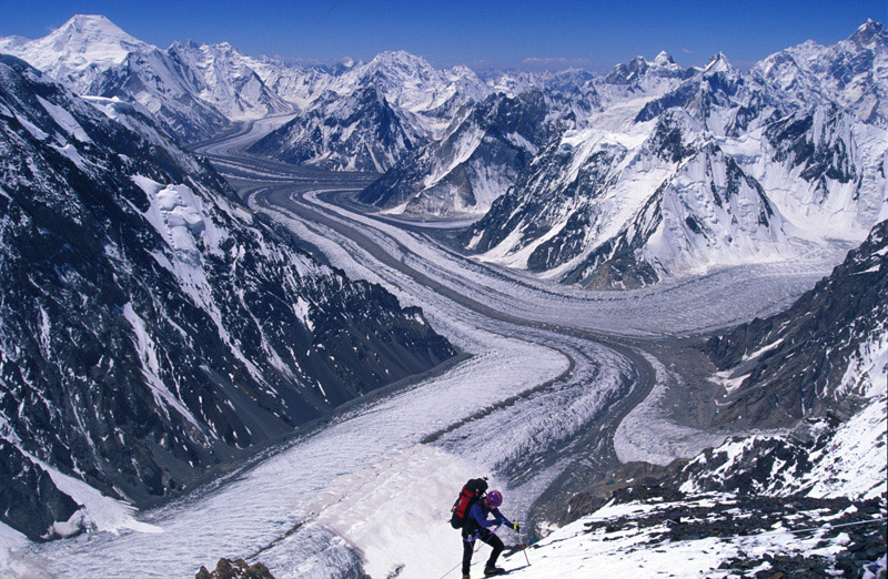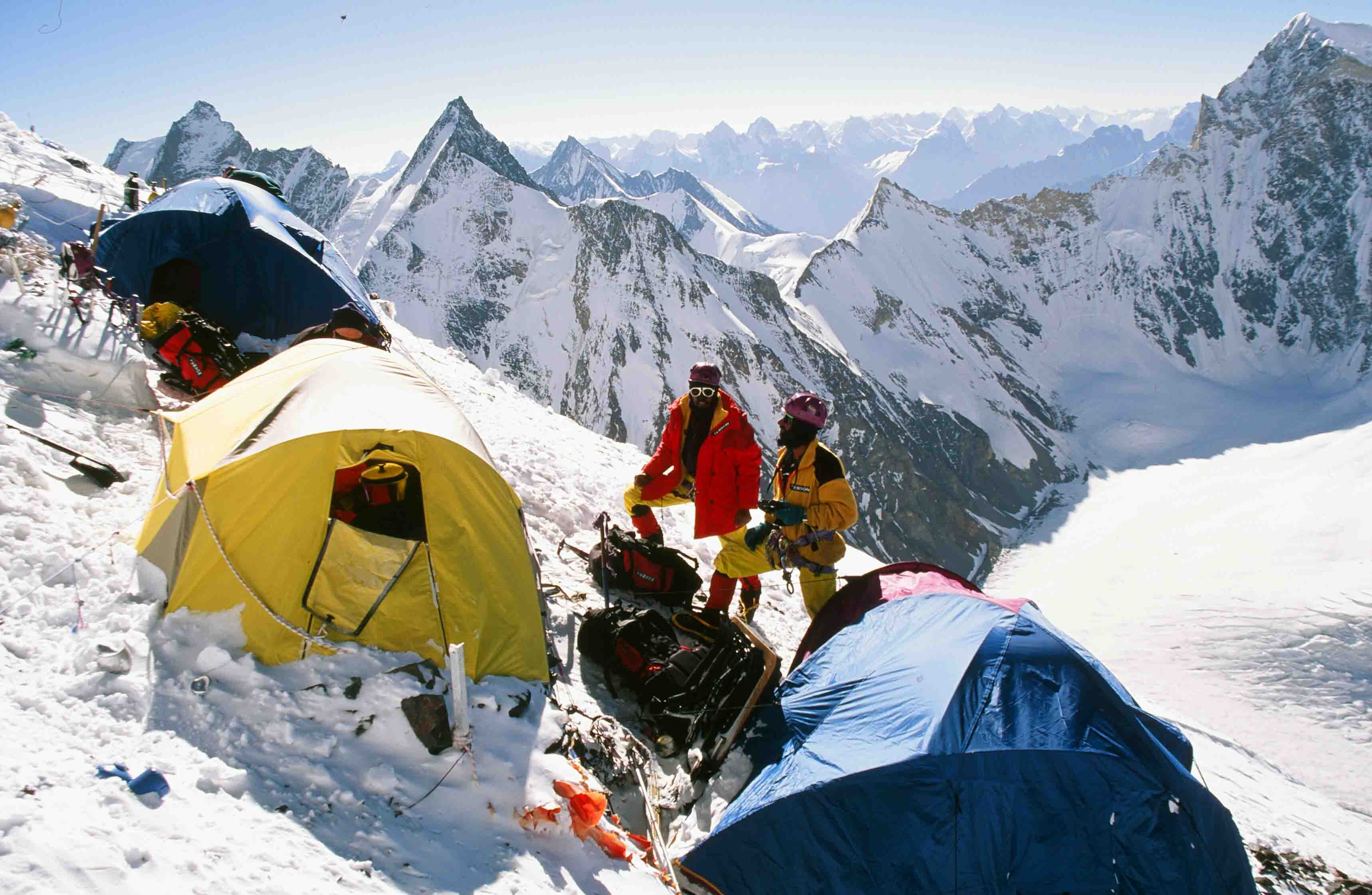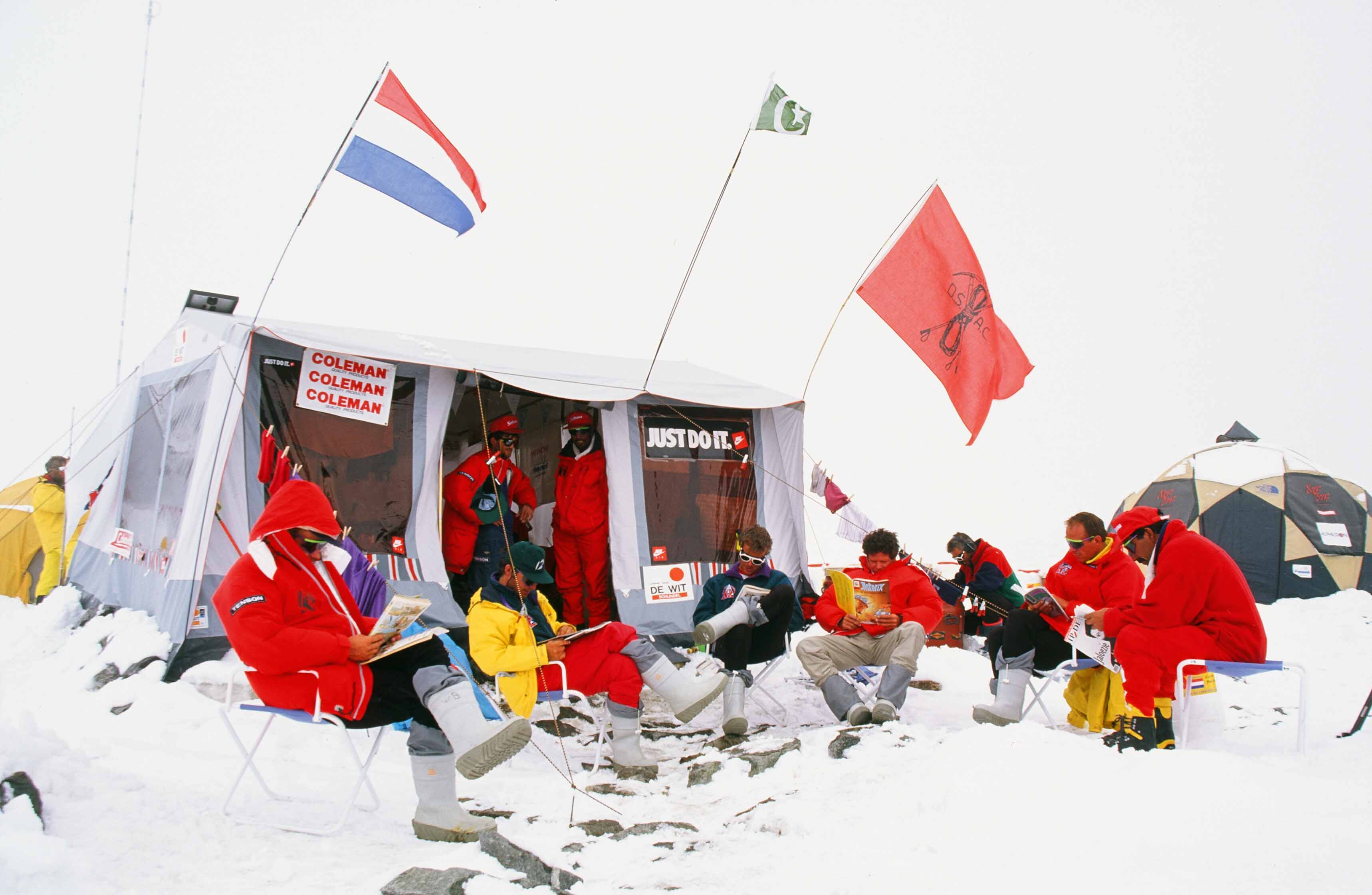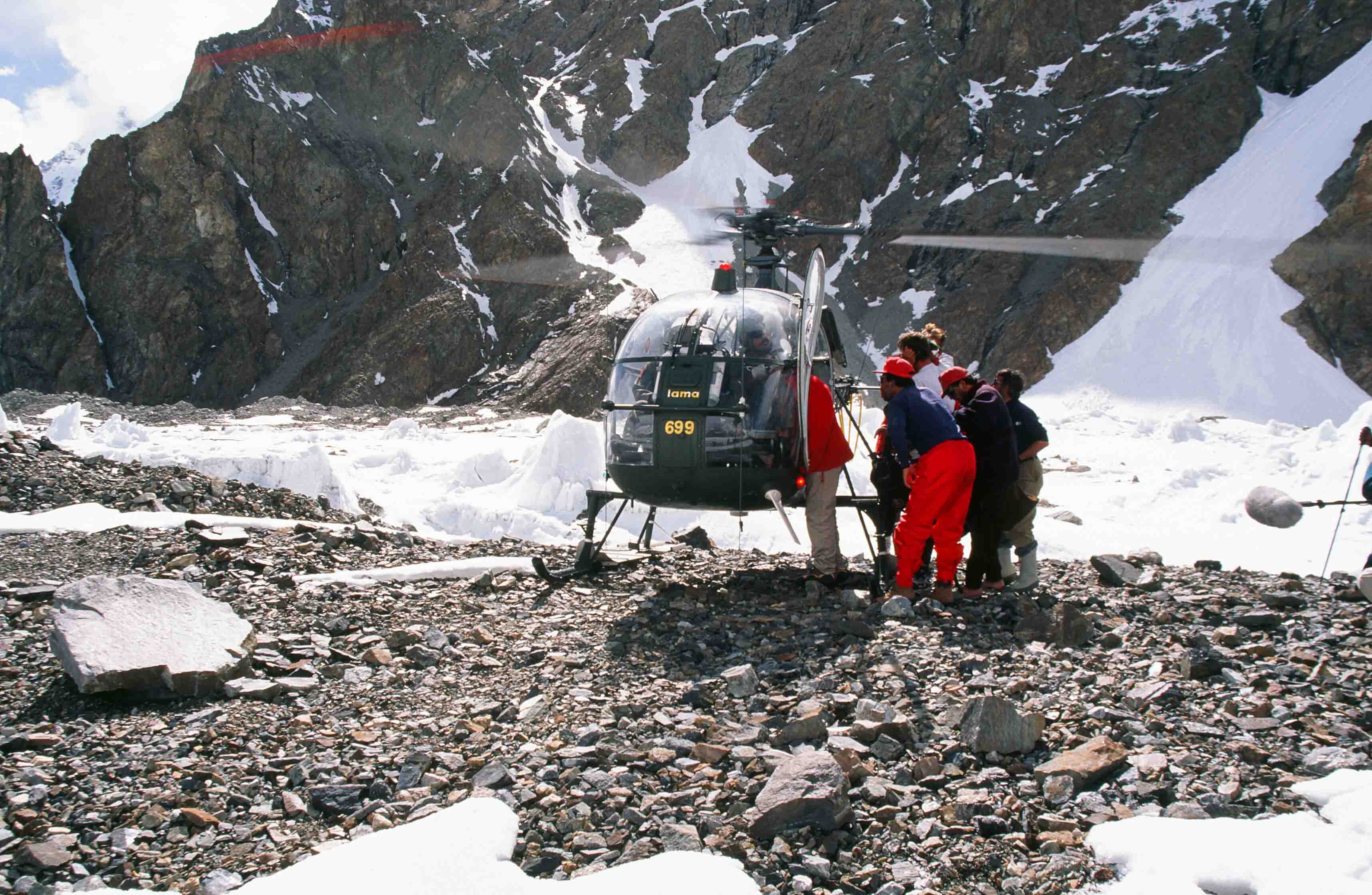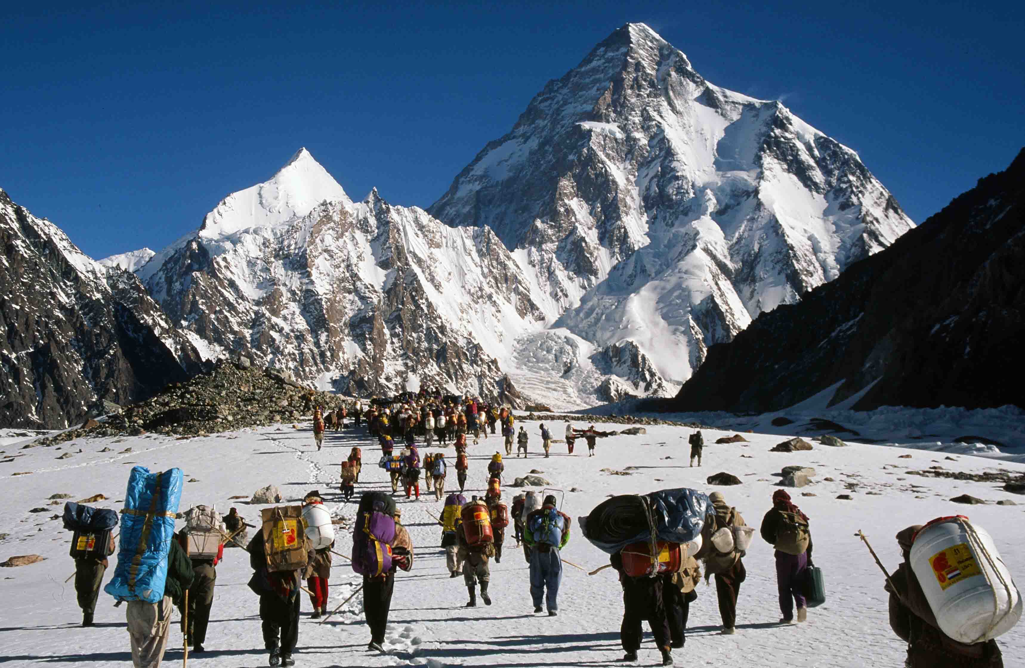 Samen met 297 dragers gaat het team te voet vanuit Askole op weg richting basiskamp. Na 80 moeizame kilometers over de woeste Baltorogletsjer worden de 6.500kg bagage gelost in het K2 basiskamp, op 4.950 meter hoogte. Het team krijgt bij de beklimming ondersteuning van 5 ‘hoogtedragers’ die meeklimmen en helpen bij het prepareren van de route over de Abruzzi-graat. Zij helpen met het installeren van kampen, het aanleggen van vaste touwen, en het omhoog brengen van voedsel, zuurstof en klimmaterialen.