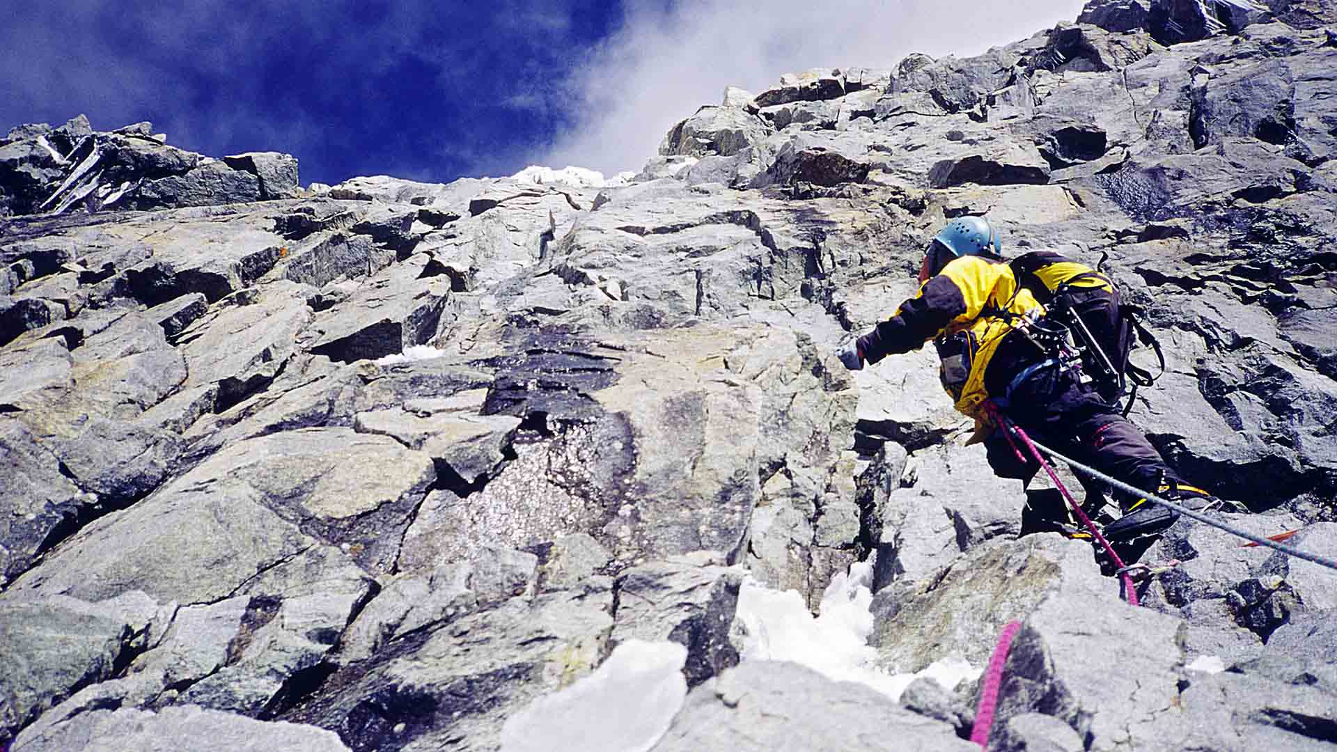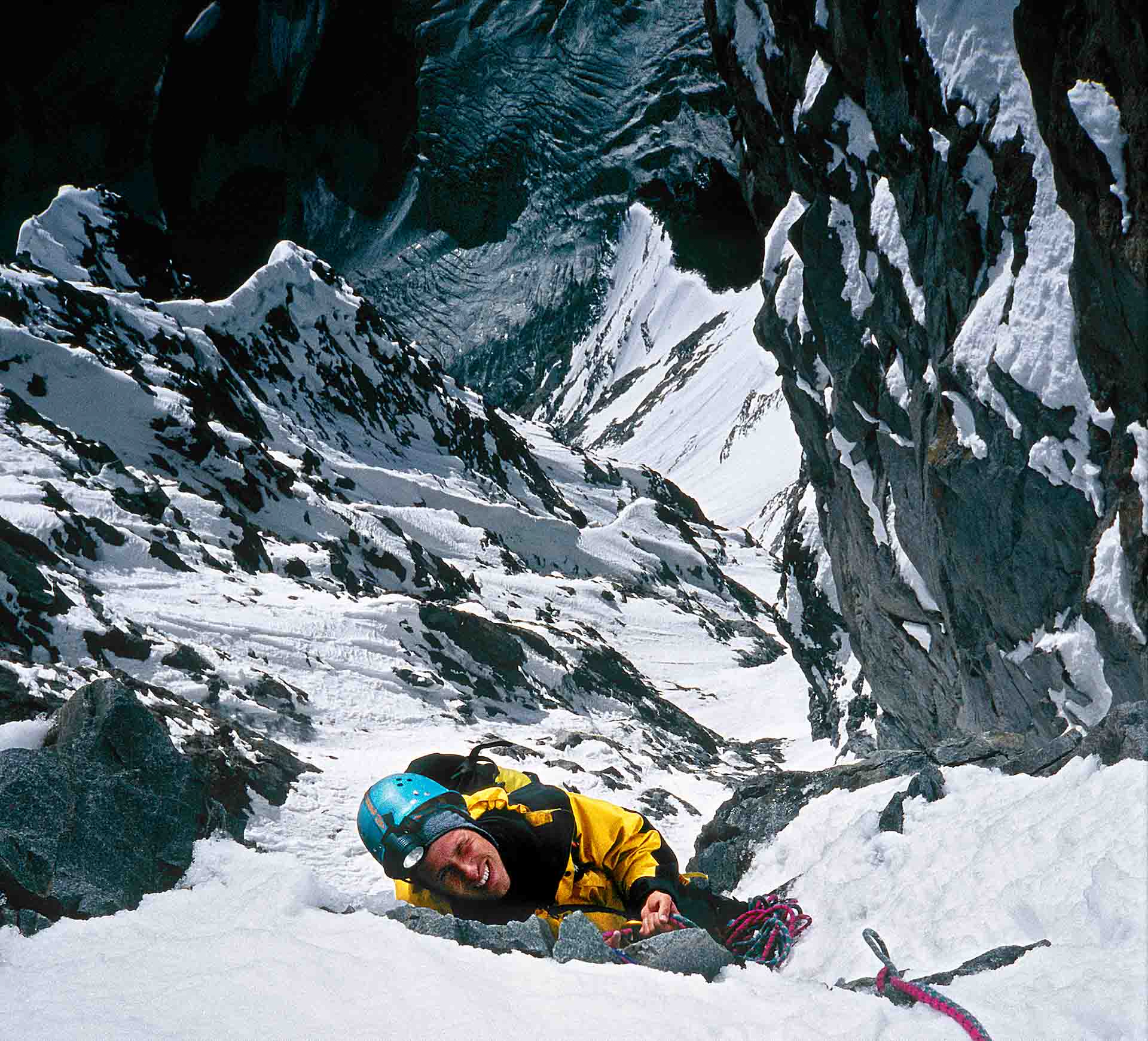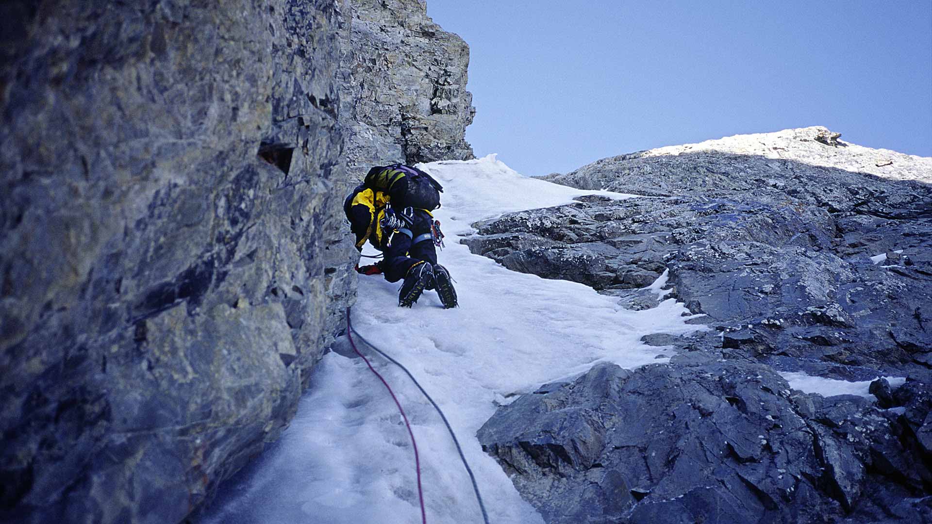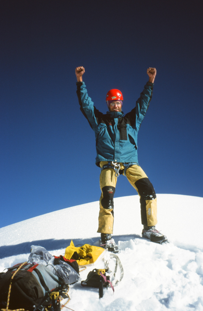 De route bleek aanhoudend moeilijk. Een lengte onder de uitklim was er nog een vertikaal ijsorgel, dat moest worden omzeild via een enigszins brakke rotsgordel. En meestal blijft de echte top dan plagerig verborgen achter de volgende hobbel. Maar in dit geval stuitten de mannen direct op de hoofdtop. De beklimming kostte Benno en Elwin in totaal 15 uur, in de tweede poging. De route werd meteen de volgende dag herhaald door Melvin en Andreas.