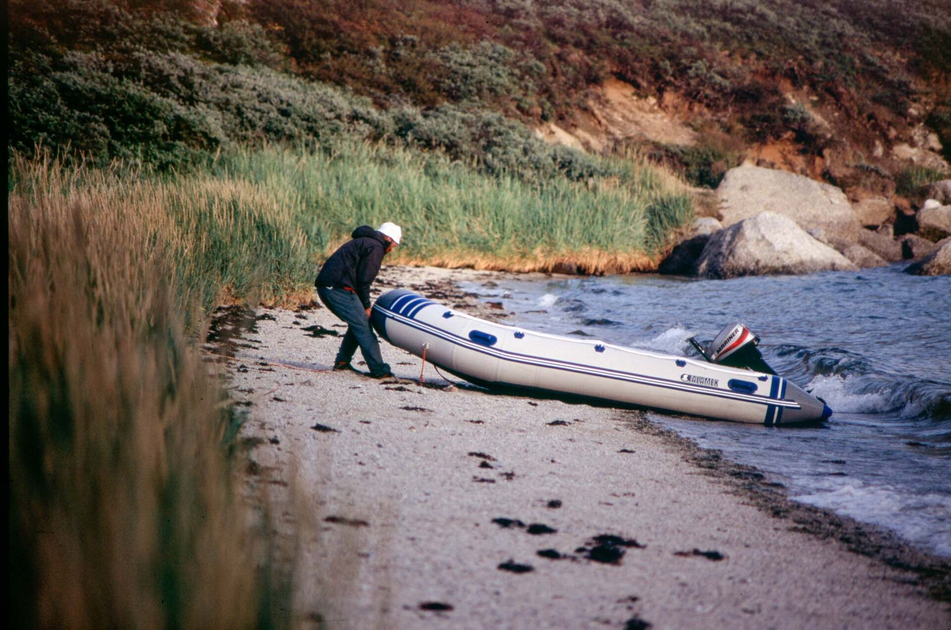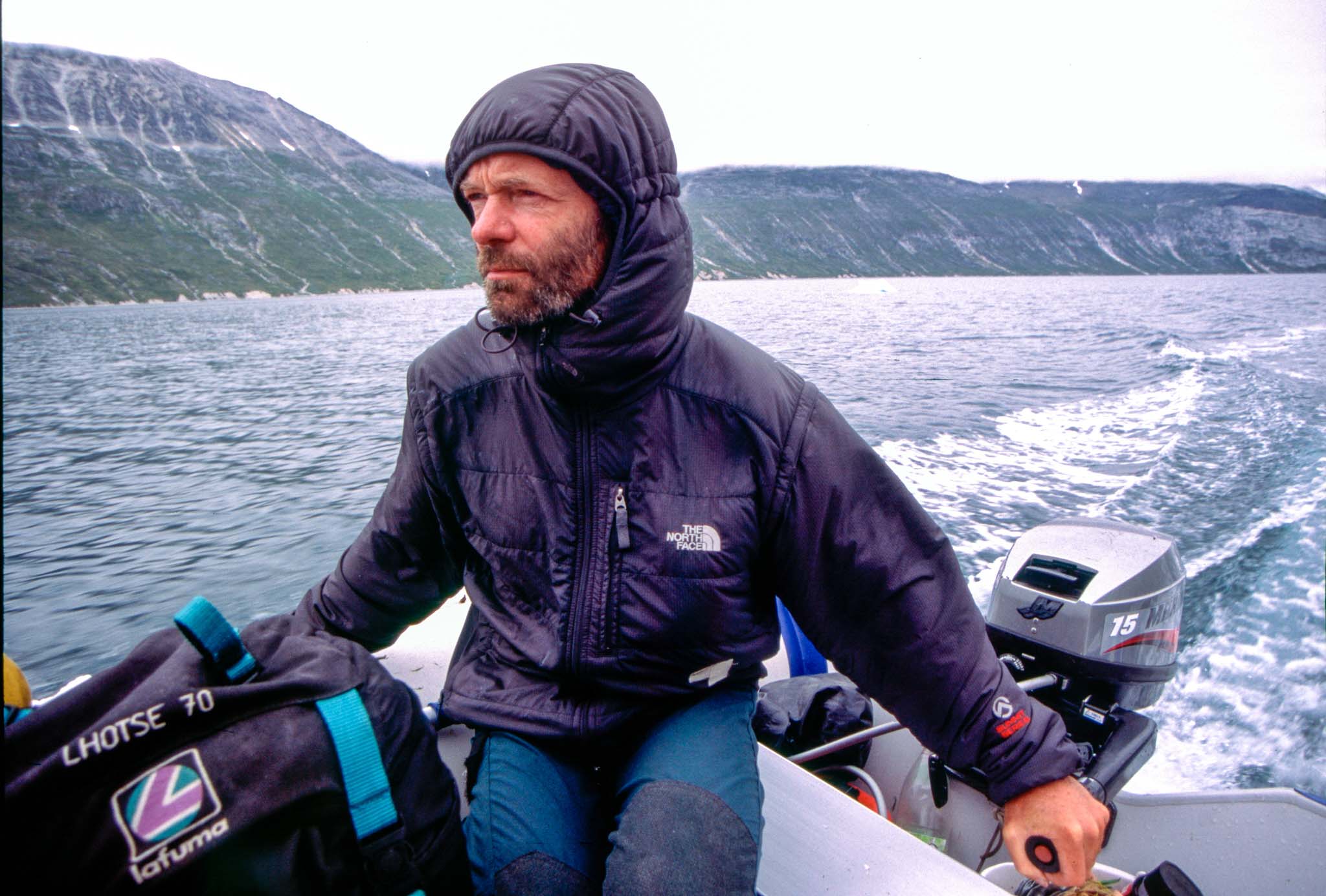 Tijdens de Tasermiut expeditie maakte Roland en Martin gebruik van een Zodiac waardoor ze op verschillende plekken aan land konden om te klimmen.