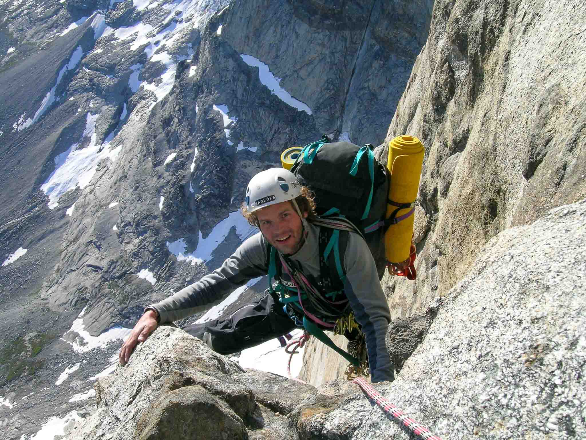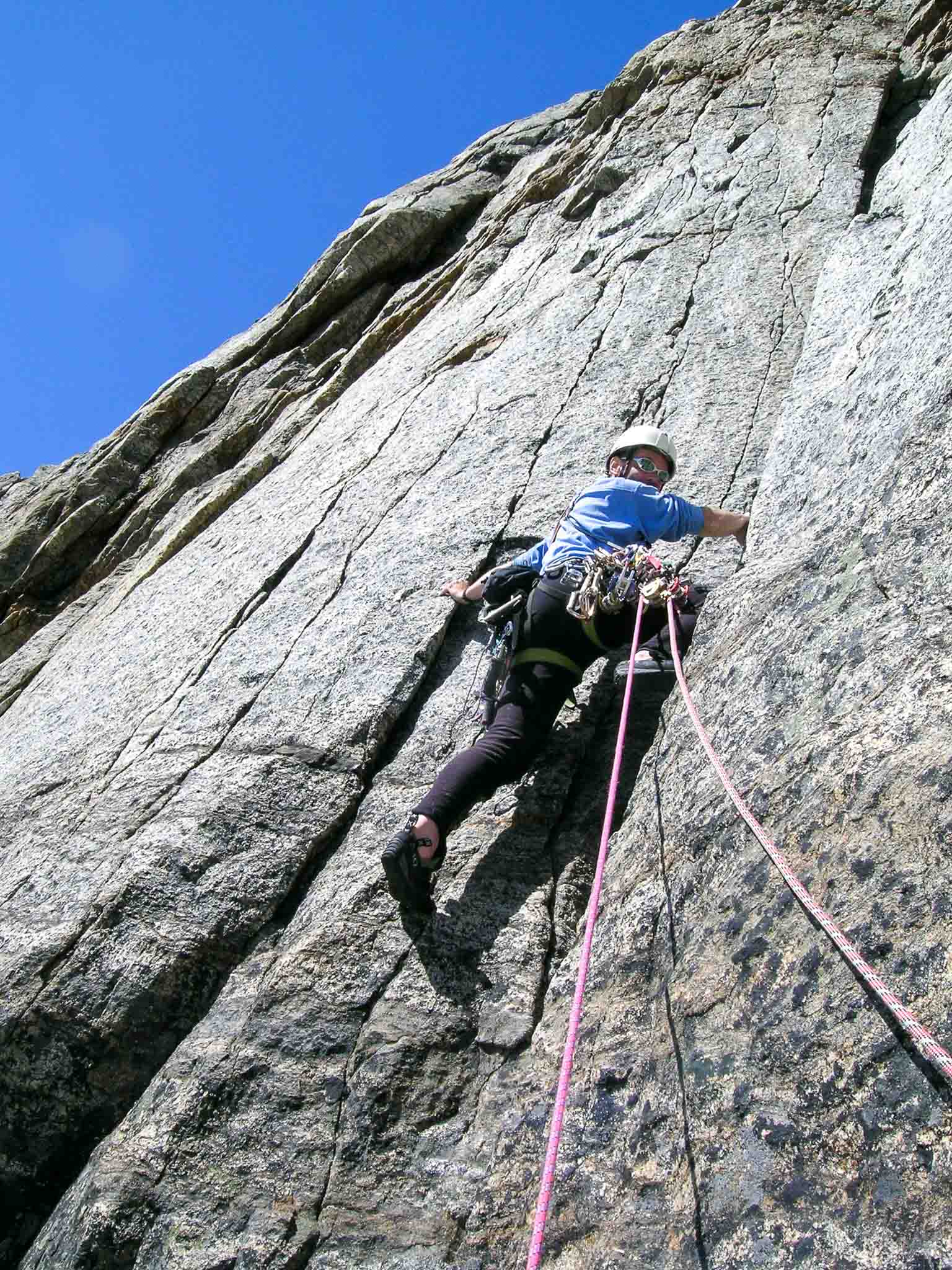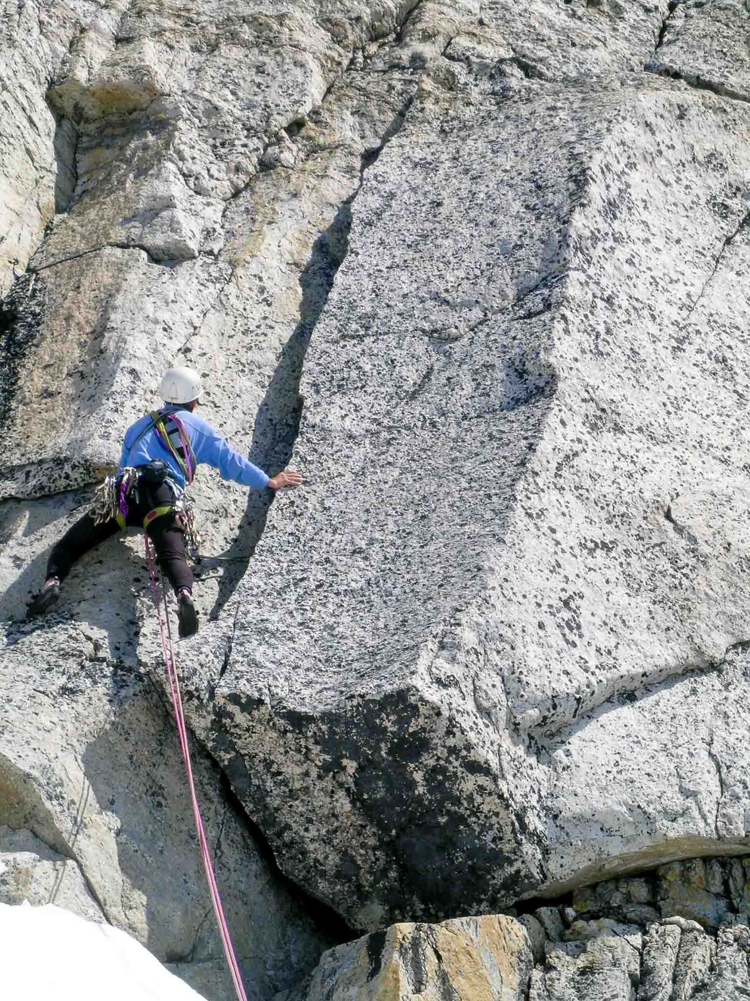 De route van Roland en Martin over de zuidoost pijler van de Titan I volgde doorgaans prachtige spleet systemen met goede rots.