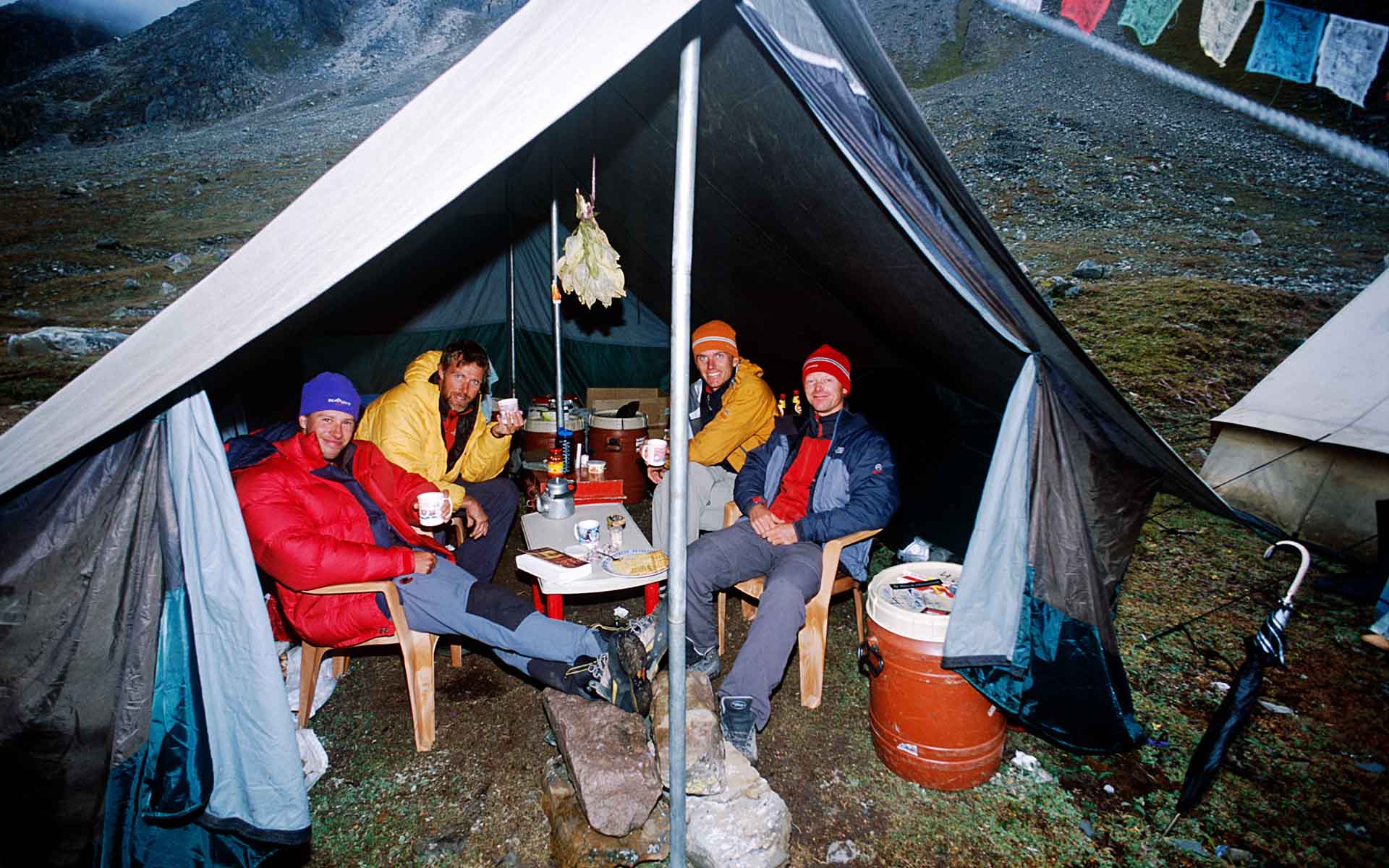 Vier paar prangende ogen kijken iedere ochtend, iedere middag en iedere avond hoopvol naar de wolken. Helaas wijken die niet voor onze dwingende blikken. De barometer hangt in de nok van mijn tent zodat ik hem scherp in de gaten kan houden. Zelfs ’s nachts, als ik me omdraai in mijn slaapzak, kan ik het niet laten om er snel een blik op te werpen.