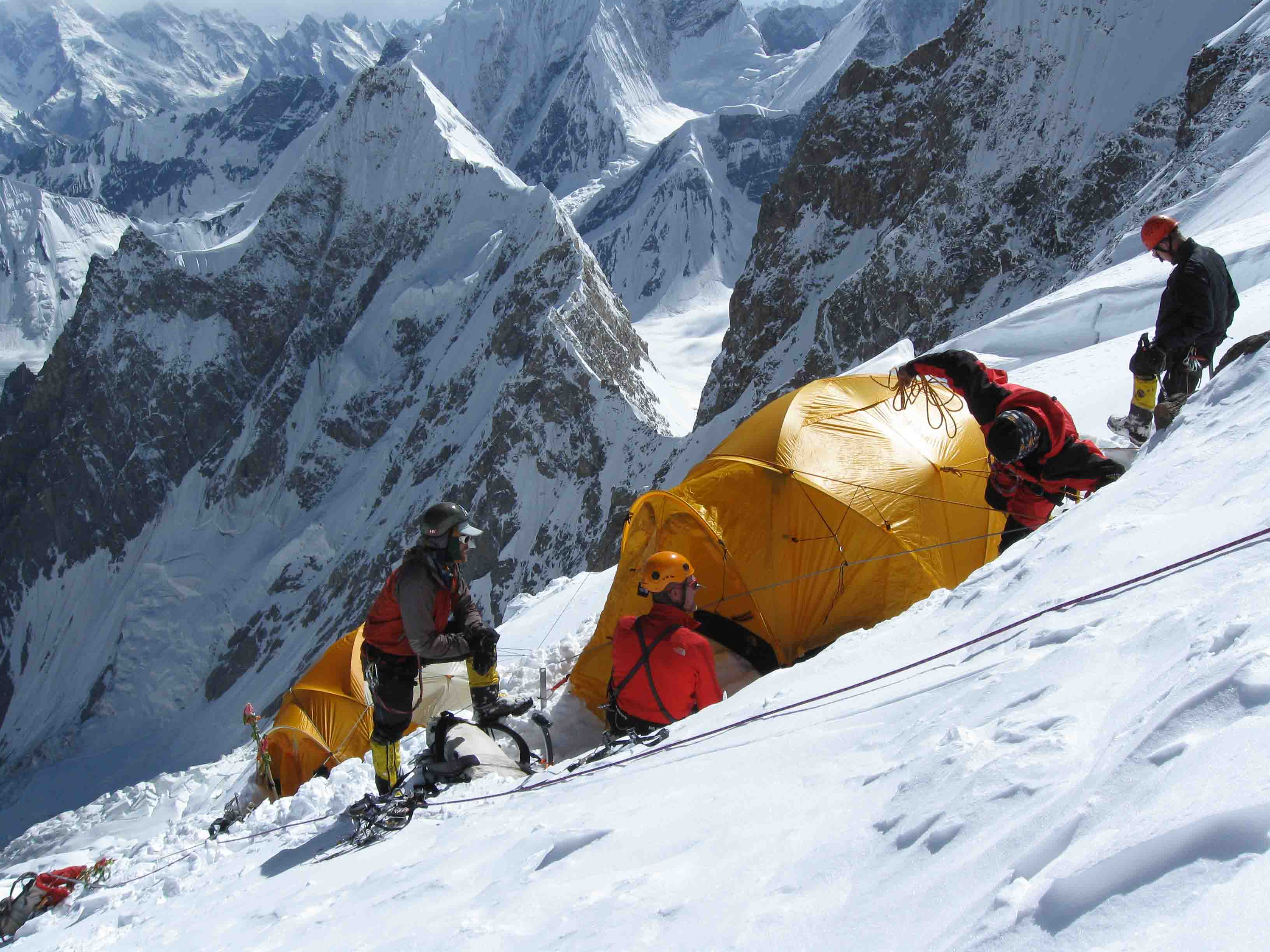 Maar helaas: het weer slaat om en het team moet meer dan drie weken in basiskamp wachten op een mogelijkheid om op pad te gaan. Juist als de verveling begint toe te slaan komen de eerste positieve weerberichten binnen. Op 28 juli vertrekt het Nederlandse team direct richting Kamp 2 op 6400 meter hoogte. Alle andere teams gaan over de Abruzzi-graat, maar de Nederlanders kiezen voor de Cesen-route.