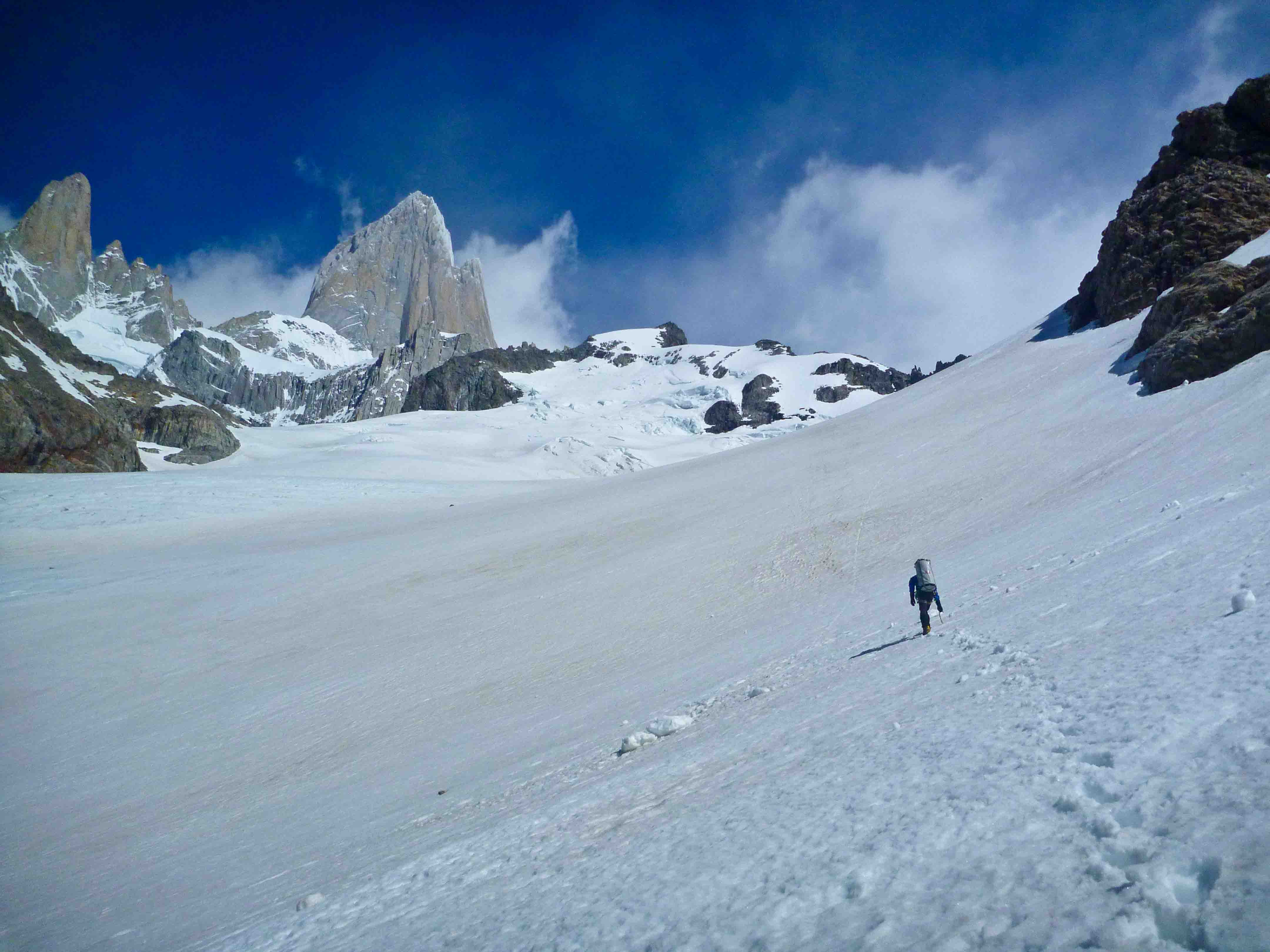Na een aardige weersvoorspelling waarin de wind twee dagen zou moeten gaan liggen, gingen Niek en Jefta op pad. Eerst omhoog naar de Paso Superior op 1950 meter hoogte, een beklimmin gop zichzelf. Er stond ondanks de voorspelling nog harde wind en de sneeuw was afgezien van een te dunne harde toplaag ongebonden. Niek en Jefta besluiten te bivakkeren op de Paso Superior om ‘s nachts om twee uur, als de sneeuw wat meer is aangevroren, verder te gaan via de Brechos de Italianos naar de Silla-pas. Daar zien ze dat de condities op de wand niet optimaal zijn, en besluiten ze voor de ‘makkelijke’ Franco-Argentina-route te gaan.
