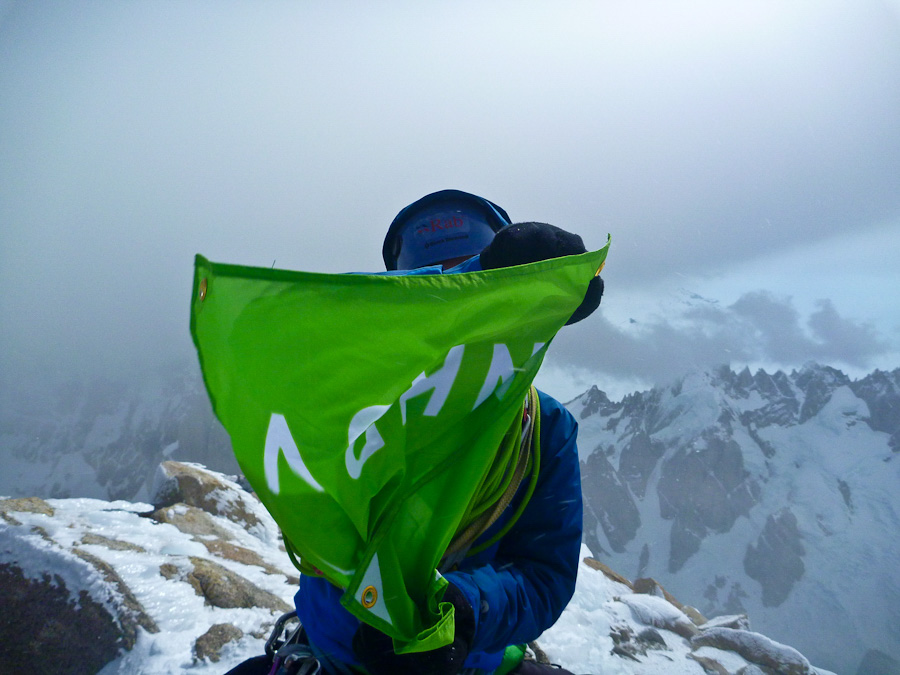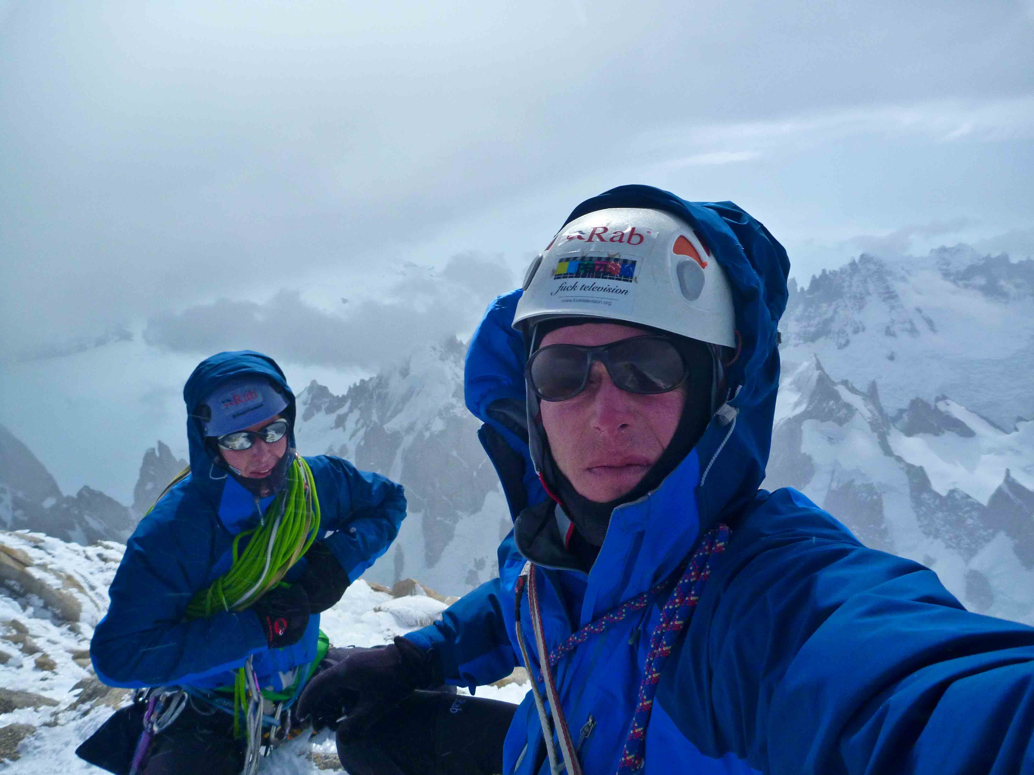 Maar dan worden ze toch nog geconfronteerd met het beruchte Patagonische weer. Vlak onder de top zien ze vanuit het noorden vage schotelvormige wolken opkomen en trok de wind van het ene op het andere moment flink aan. In de harde wind klimmen ze snel door naar de top, die ze om 6 uur ‘s avonds bereiken. Er is weinig tijd om dit Nederlandse succes te vieren, want de Patagonische storm blijft aanzwellen, en Niek en Jefta dalen snel af.