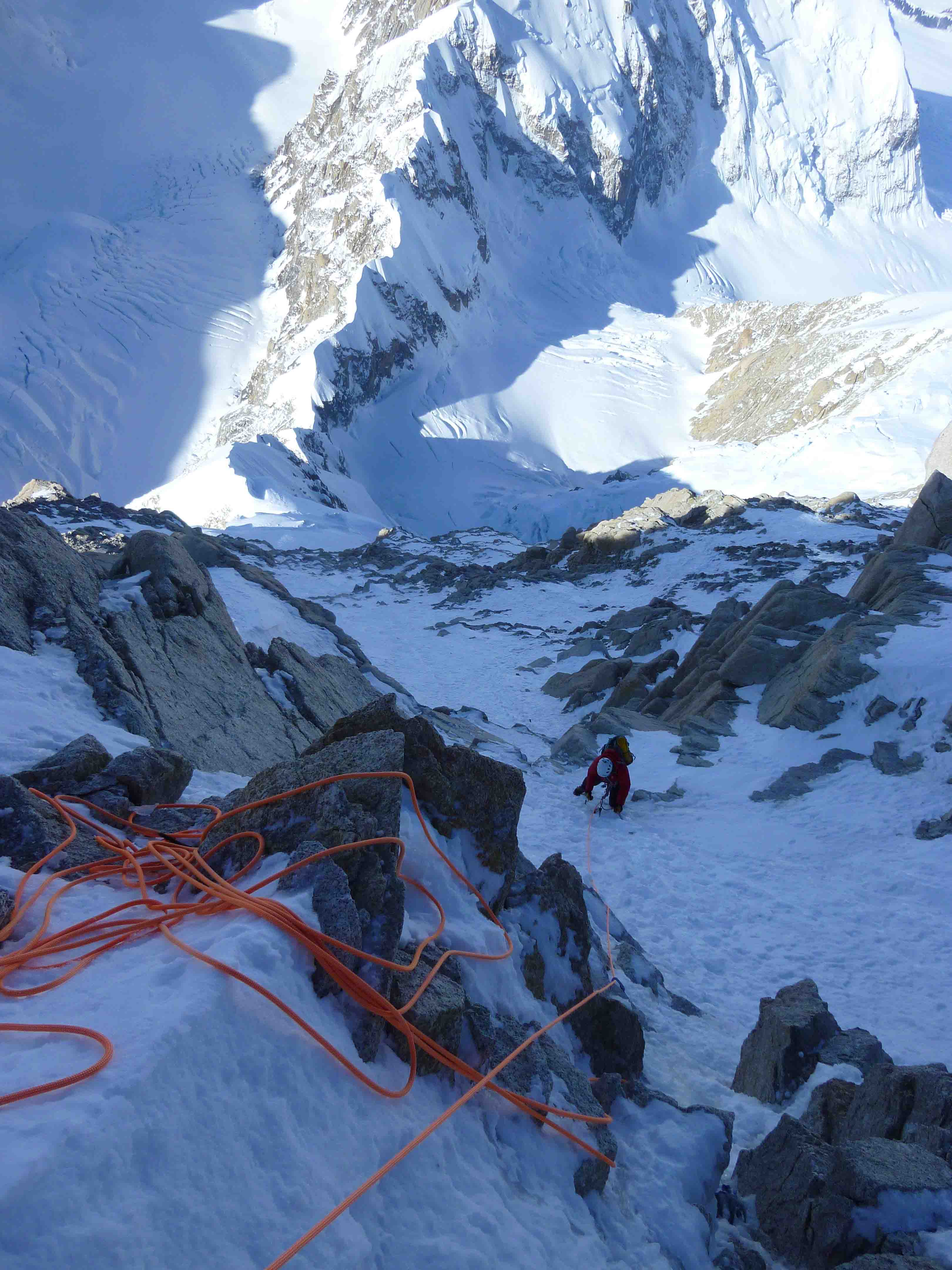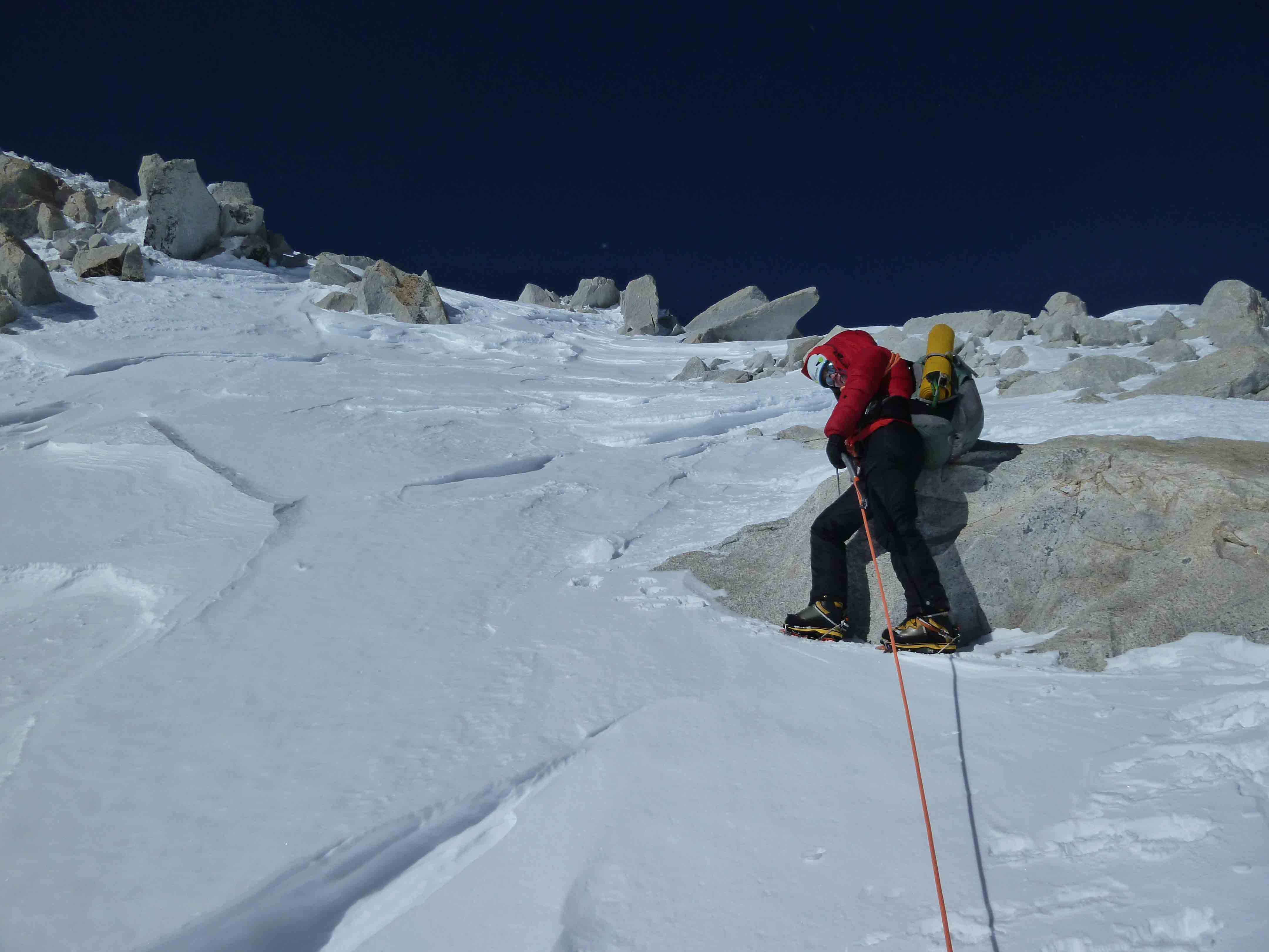 Ze daalden af naar het begin van de route (op 3800m), namen wat rust en begonnen rond 22.00 uur aan de beklimming. Rond 19.30 de volgende dag bereikten ze na 22,5 uur de top van de route. Een Nederlands snelheidsrecord.