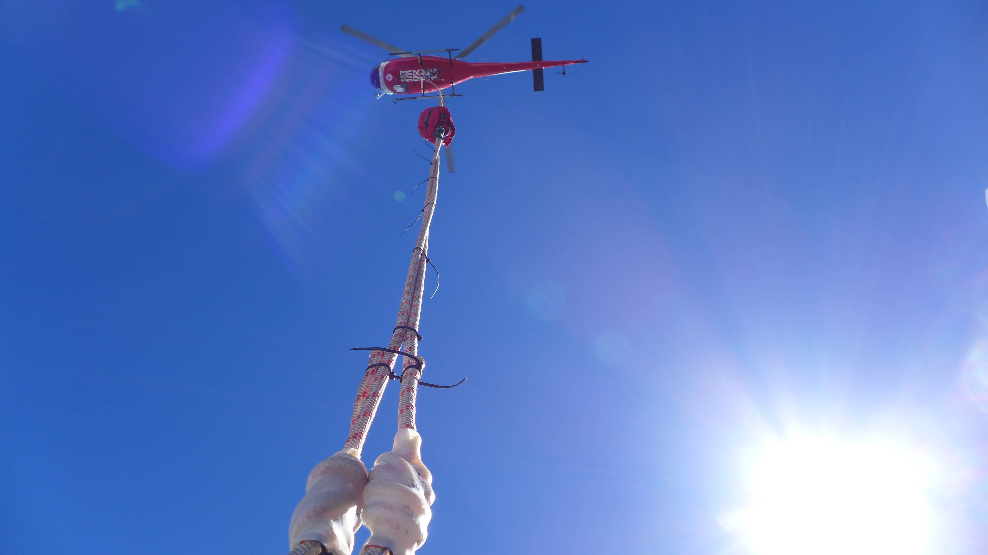 Het team wil via de satelliettelefoon hulp inschakelen, maar krijgt geen signaal en begint daarom met beschadigde touwen aan de afdaling. Dat gaat moeilijk. Na ongeveer 400 meter dalen maken ze een bivak. ‘s Nachts seinen ze lichtsignalen uit in de hoop opgemerkt te worden. Rond 9 uur ‘s ochtends blijkt het signaal opgepikt te zijn als een helikopter ze op komt halen.