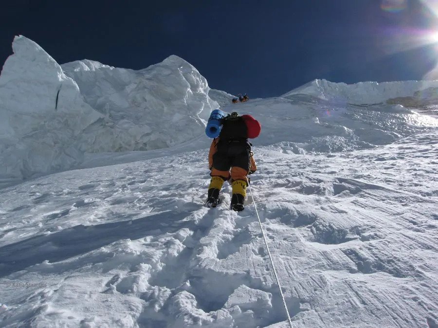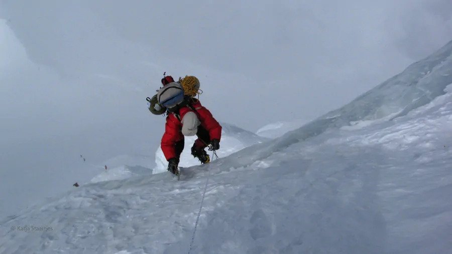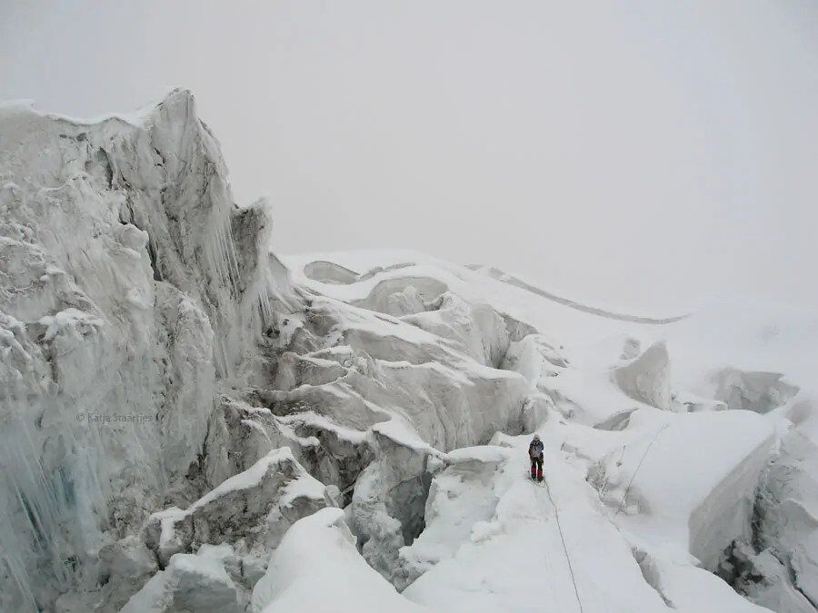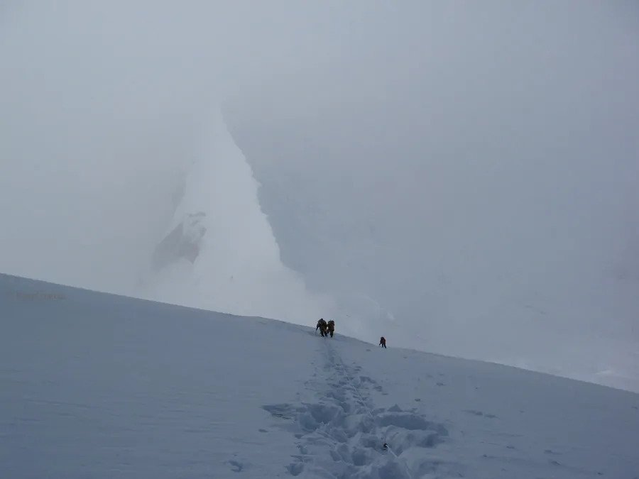 Ten opzichte van het voorjaar was de route veel droger en zat de gletsjer vol spleten. Een deel was zelfs onbegaanbaar, zodat het team bovenlangs door de rotsen moest klimmen. Tot kamp 3 (6700 m) was de route lastiger dan in het voorjaar, maar daarboven werd het beter: vanaf 7400 meter lag er goed begaanbare harde sneeuw.