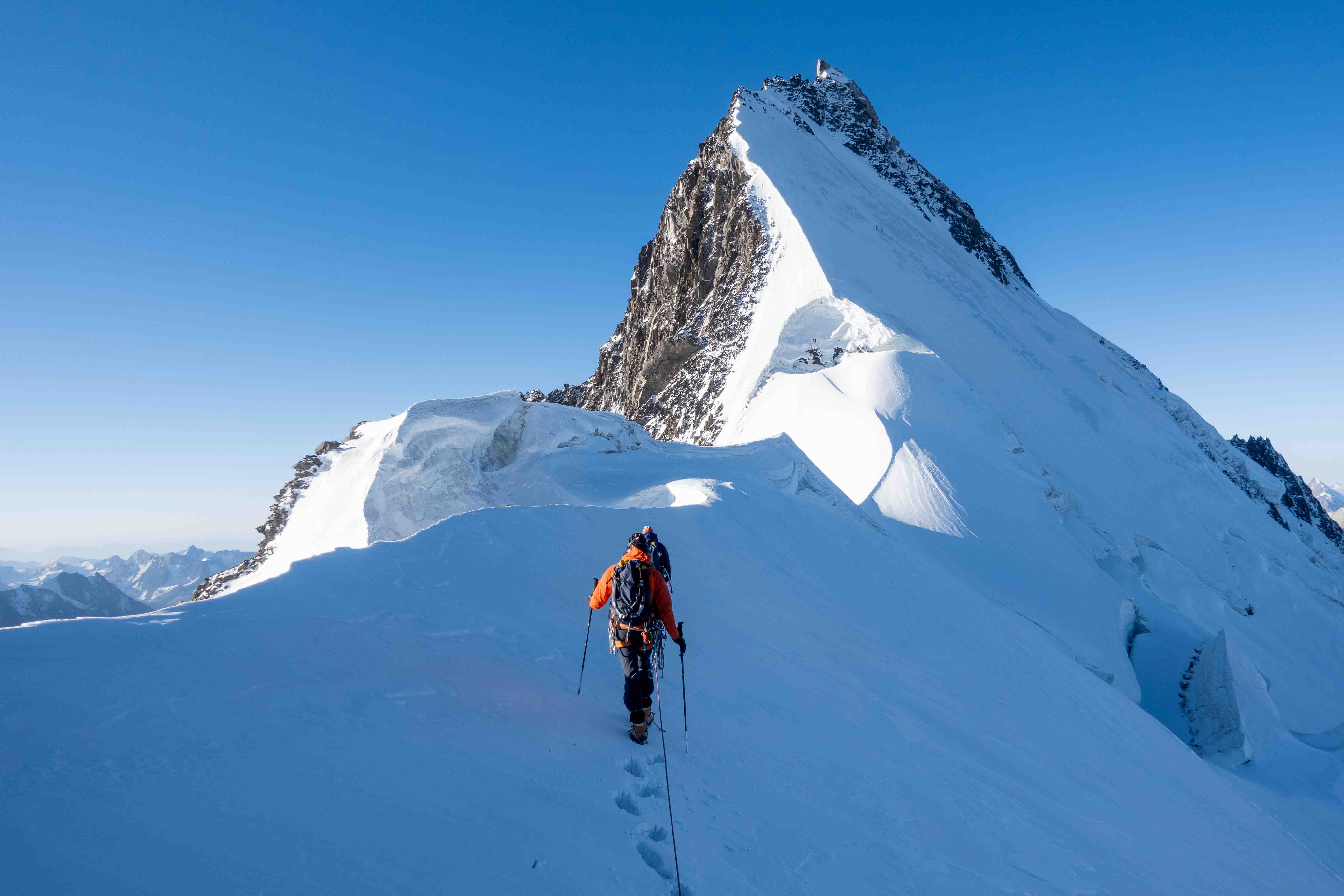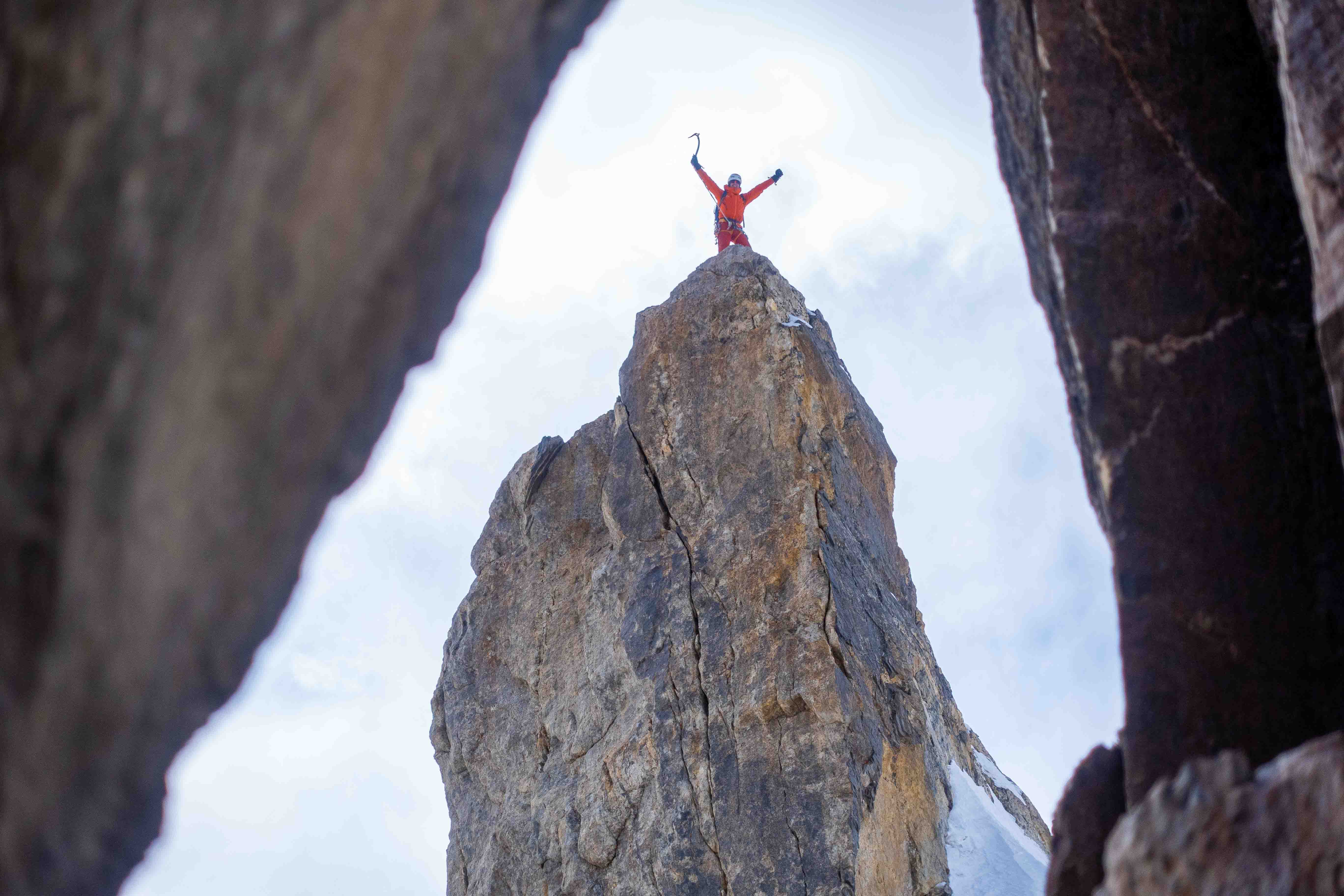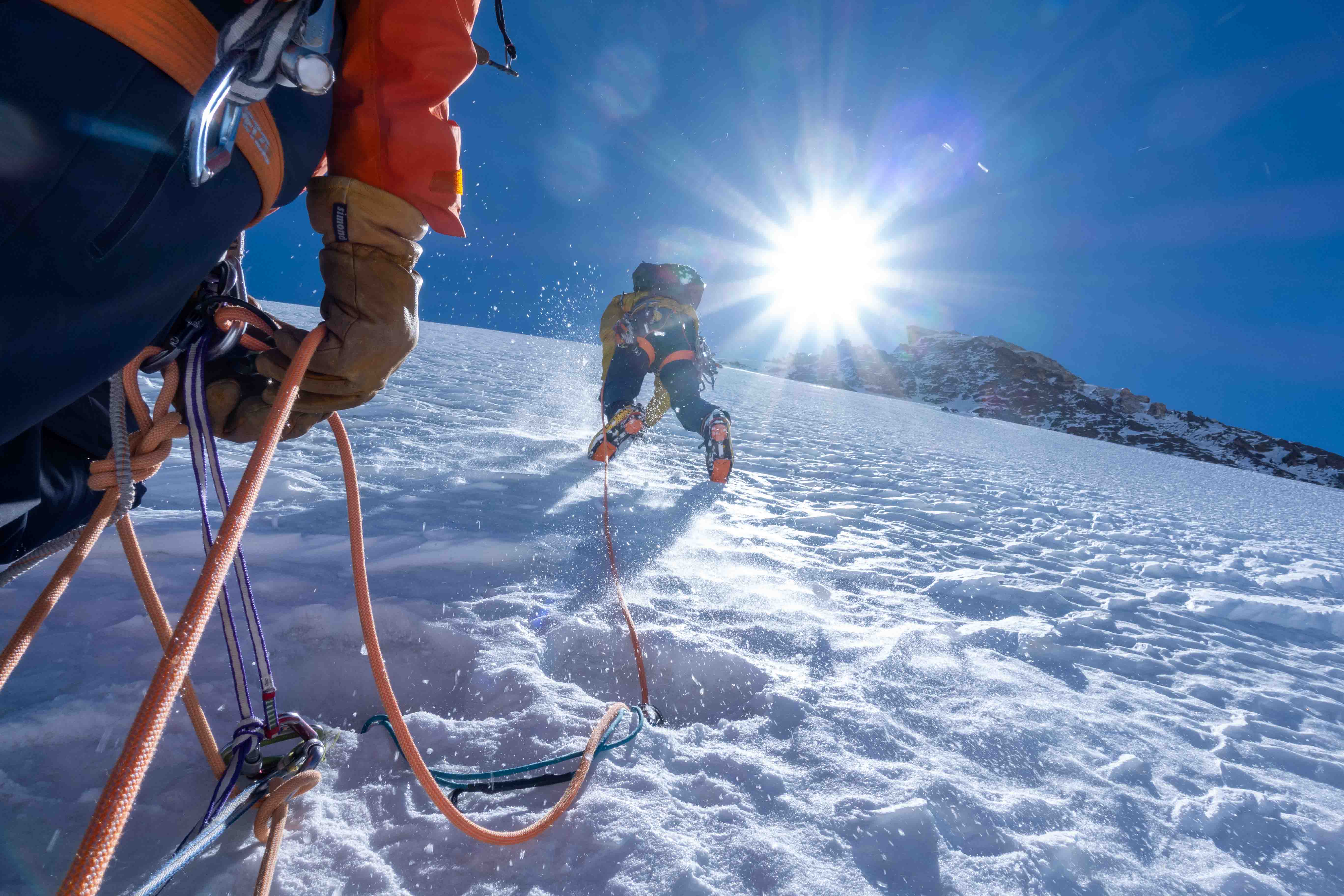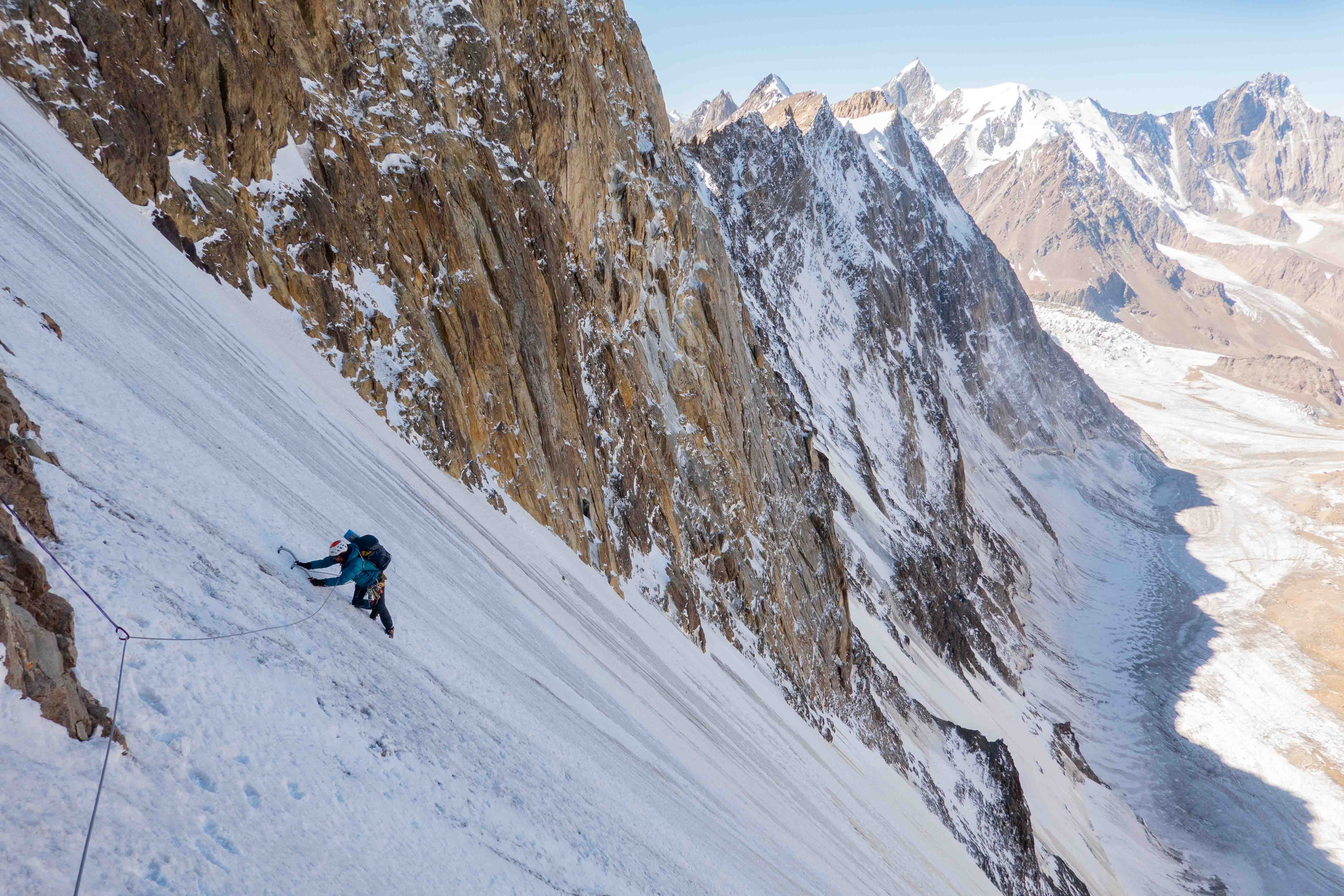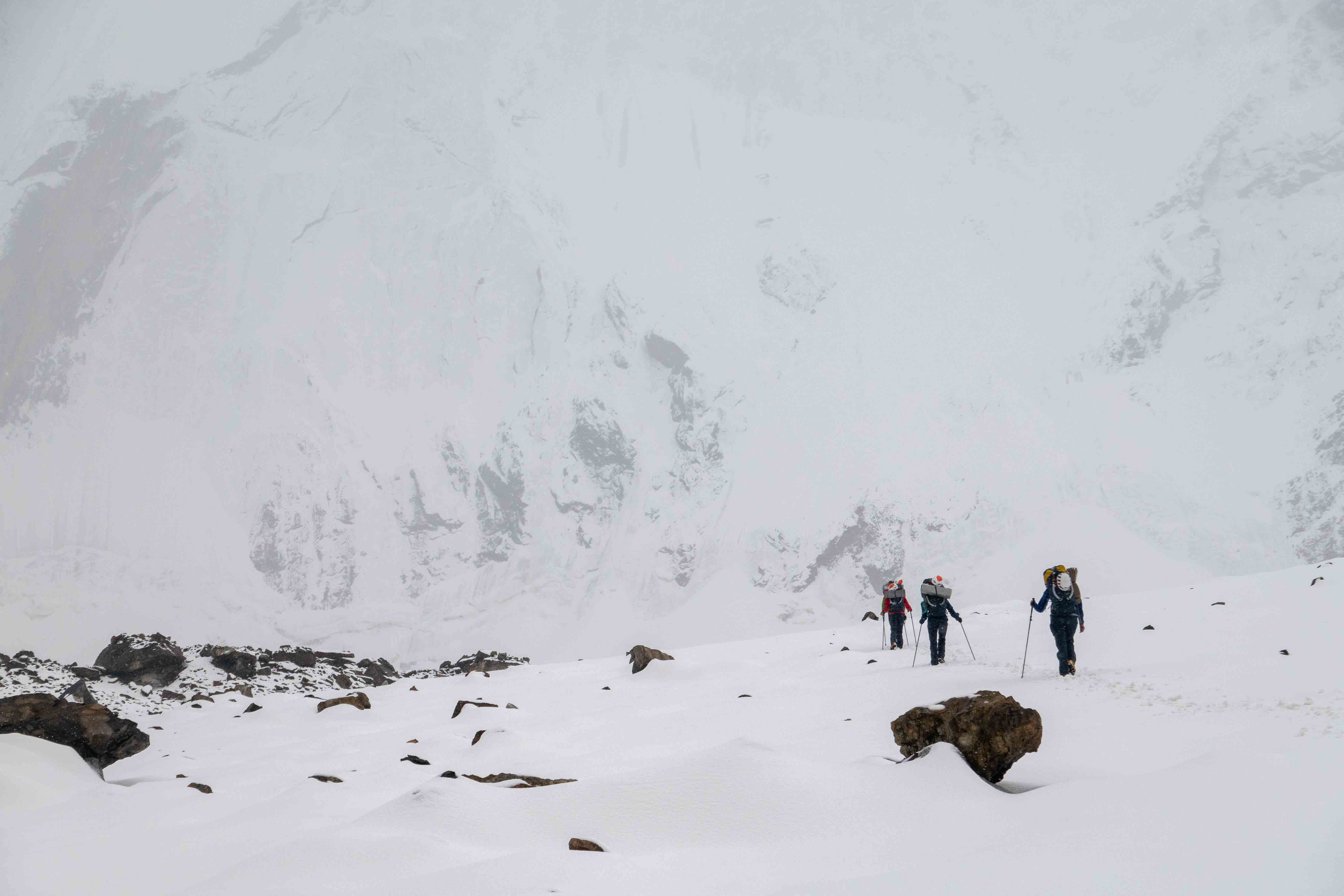 Na de verkenning was het team klaar voor het echte werk. Vanuit een vooruitgeschoven basiskamp (ABC) op 3900m klommen twee teams nieuwe ijslijnen op ‘Hidden Peak’. Noor, Regien en Bas klommen het oostcouloir (1000hm, TD- AI3, M4) en noemden hun route ‘Diagonale du Fou’. Dennis en Anniek klommen een 400m lange ijslijn op de noordwand, gevolgd door het oostcouloir op 4600m (1000hm in totaal TD+ AI5 M4) en noemden hun variant ‘Directe du Fou’. De twee teams hebben gezamenlijk het laatste deel geklommen en besloten af te dalen na de technische moeilijkheden, voordat de top werd bereikt, op een hoogte van ongeveer 4900, omdat ze geen bivak materialen bij zich hadden.