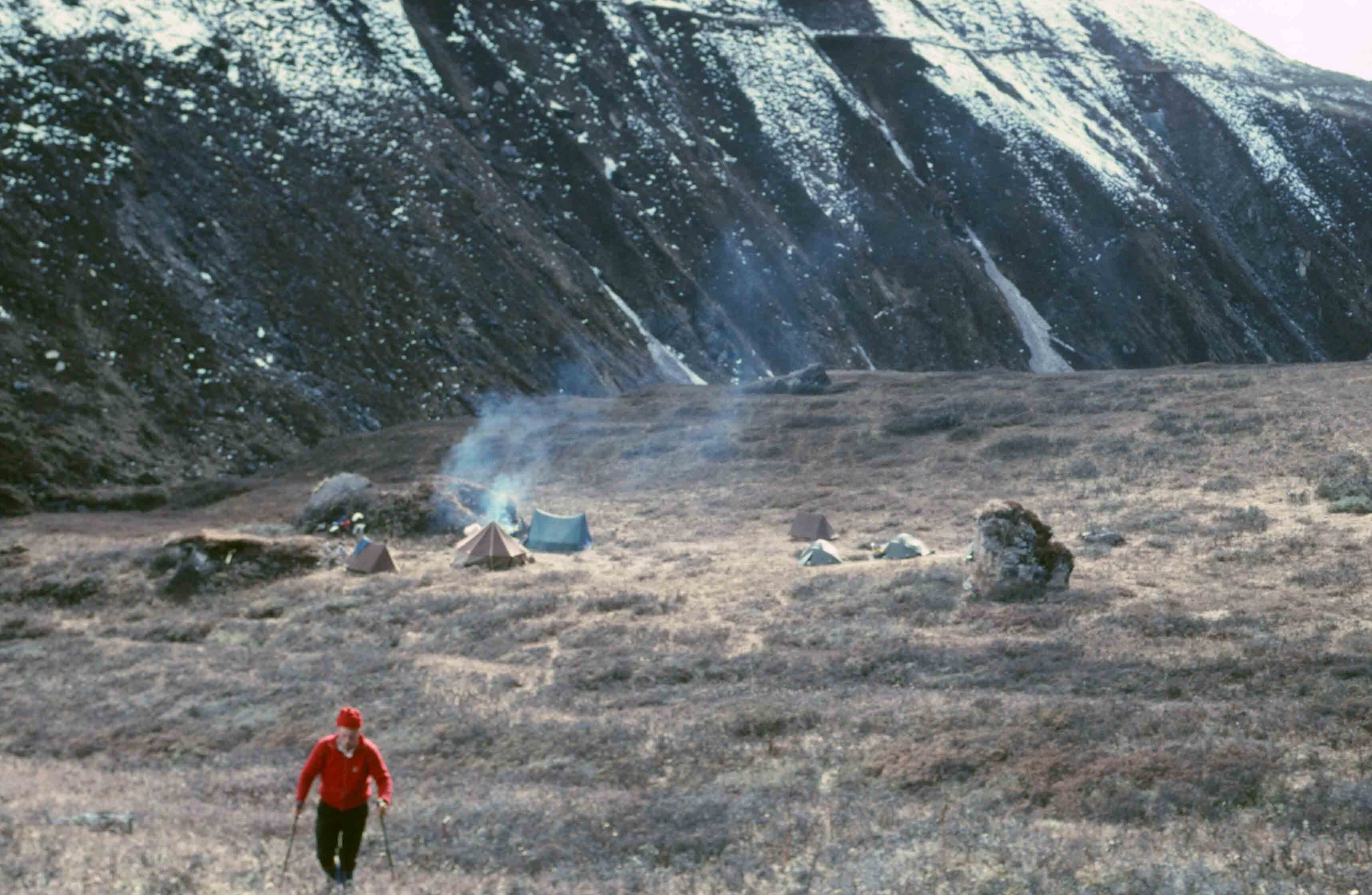 De eerste week was er tegenslag door uitzonderlijk slecht moessonweer, waarbij het transport van materiaal en mensen richting Surketh aanzienlijke vertraging opliep door sandslides en waarbij ook het lopen op de doorweekte paden erg moeilijk was. Na Jumla en de oversteek over de Barbaria Lagna (4270 m) vestigden ze het Basiskamp aan de rivier de Garpung Khola. Het Hoogtekamp werd door enkelen ingericht op 4850 meter vlak onder de pas (Kagmara La 5115 m); de meesten daalden weer af naar BK om daar te slapen.