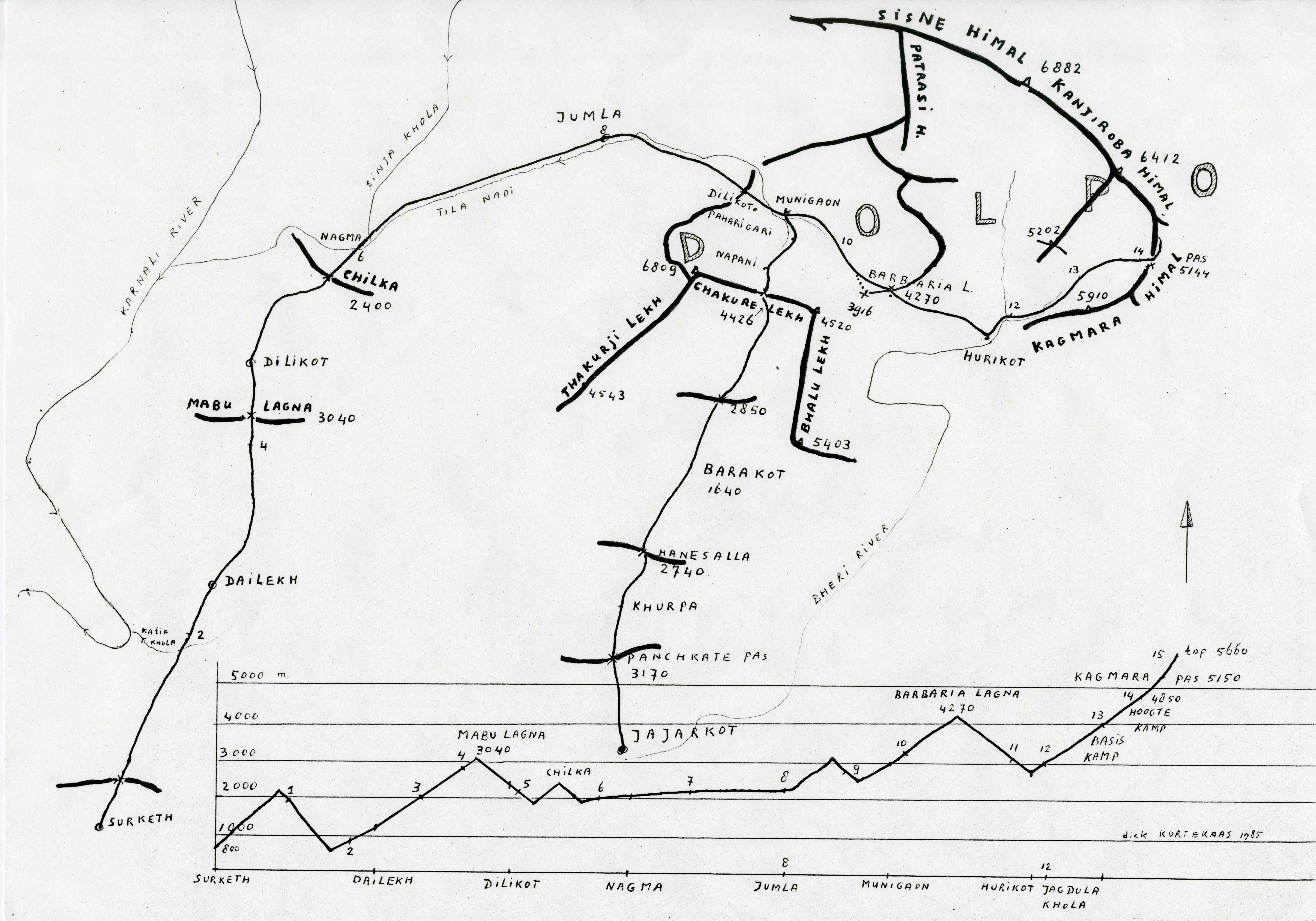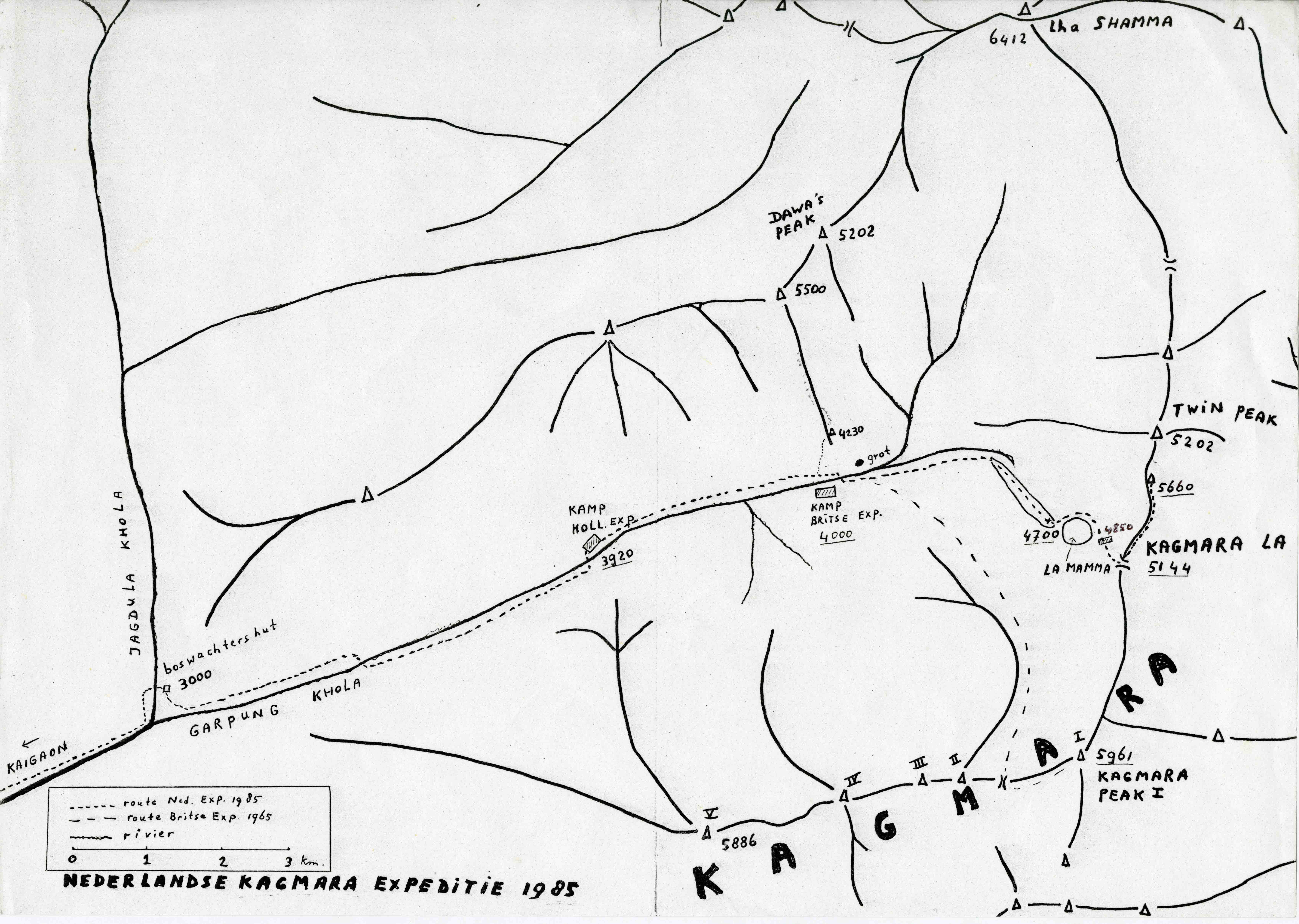 In de herfst van 1985 kreeg een Nederlands team een “special permit” om in Nepal vlak bij de Tibetaanse grens door het Dolpogebied te trekken en de Kagmara te beklimmen. Deze keten ligt in de regenschaduw en ten noordwesten van de Dhaulagiri.
