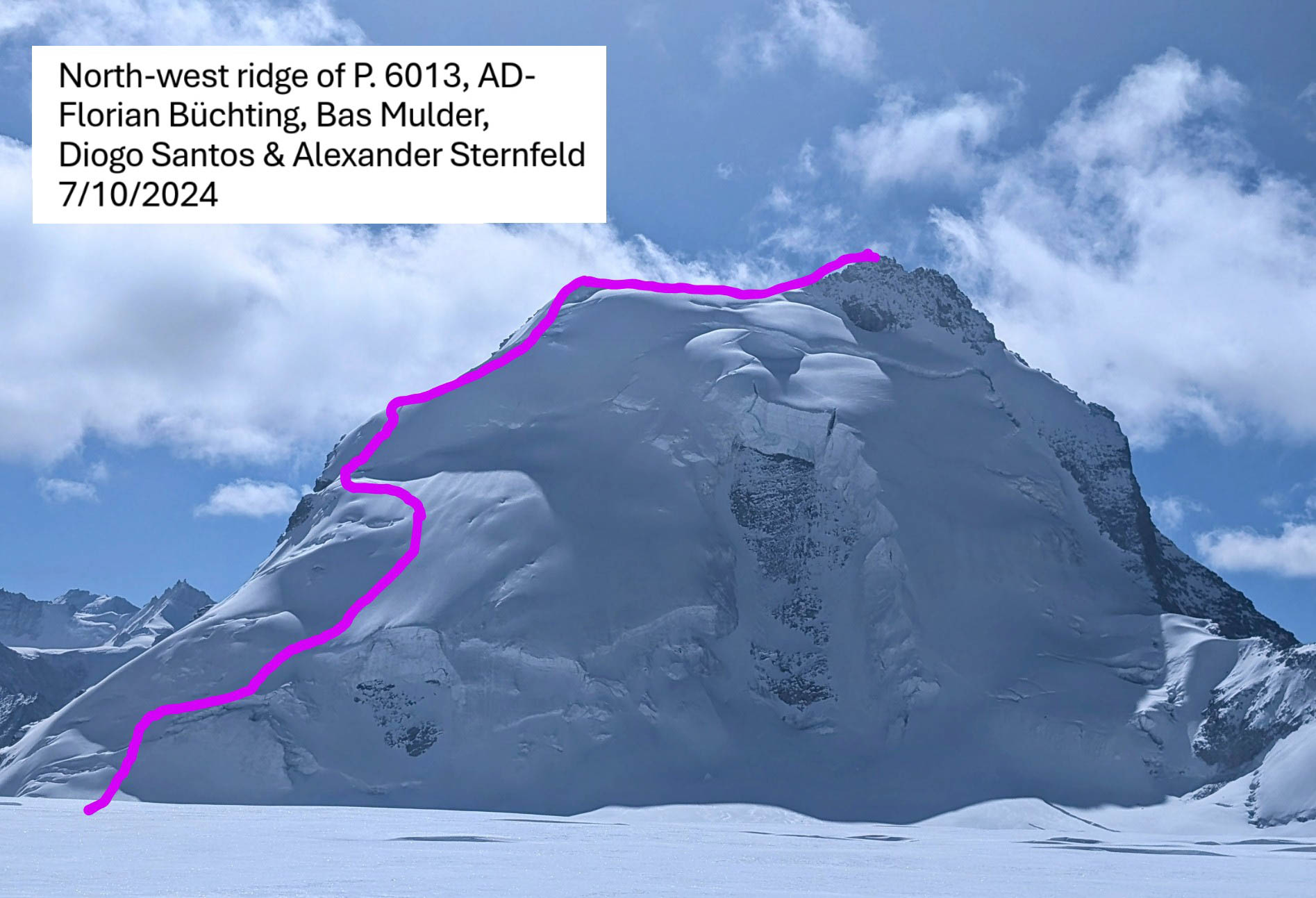 De (vermoedelijke) eerstbeklimming van P. 6013 was een goede acclimatisatietocht voor het team. Via de noordwest graat kon relatief eenvoudig (AD-) de top worden bereikt. De kou en hoogte waren uitdagend en gaven een goed beeld van het karakter van het klimmen in deze regio. Bij terugkomst in het gletsjerkamp bleek 1 van de tenten omgewaaid te zijn en waren 2 matjes verdwenen, dit was reden voor Bas en Alex om terug te keren naar base camp. Florian en Diogo hebben 1 dag later een eerstbeklimming van de Ganglung Kangri 1 gemaakt via de zuidgraat (AD). Deze graat bestond ten dele uit graniet van hoge kwaliteit, maar was bovenin erg brokkelig en los.