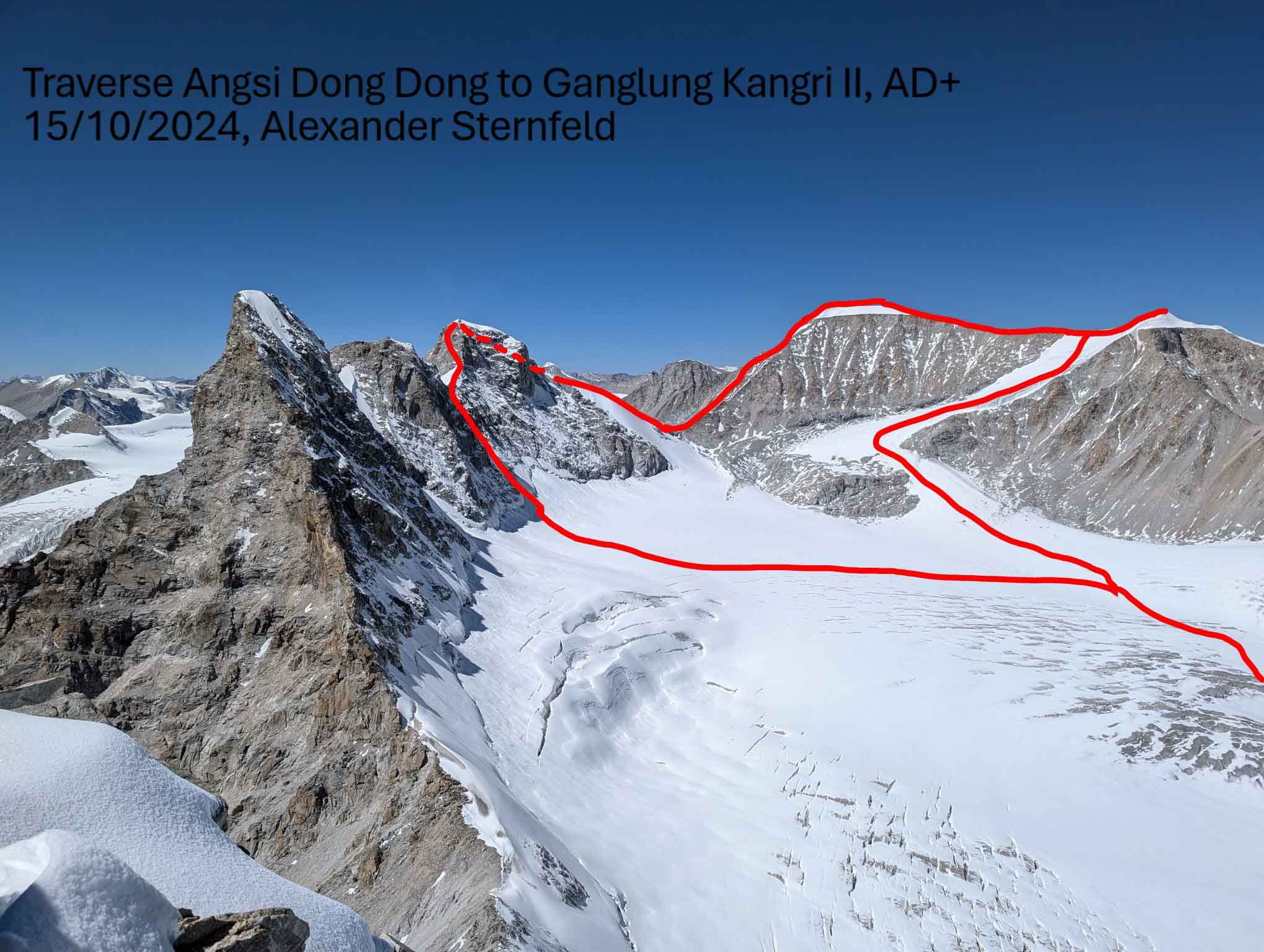 Florian en Diogo beklommen de Angsi Dong Dong (AD+) via de oostgraat en daalden af via de zuidwestelijke flank. Om op de oostgraat te komen beklommen ze een mooi couloir aan de noordkant. Tegen zonsondergang stonden ze op de top, wat voor mooie foto’s zorgde. Met behulp van de sporen op zowel de Angsi Dong Dong als de Ganglung Kangri, voltooide Alexander solo een traverse van de Angsi Dong Dong naar Ganglung Kangri 1 en 2 (AD+). Tijdens deze tochten was er mooi uitzicht op de Kailash in Tibet, en werd opgemerkt dat de Ganglung Kangri een vrij steile noordwand heeft, die vanuit Tibet geklommen zou kunnen worden.