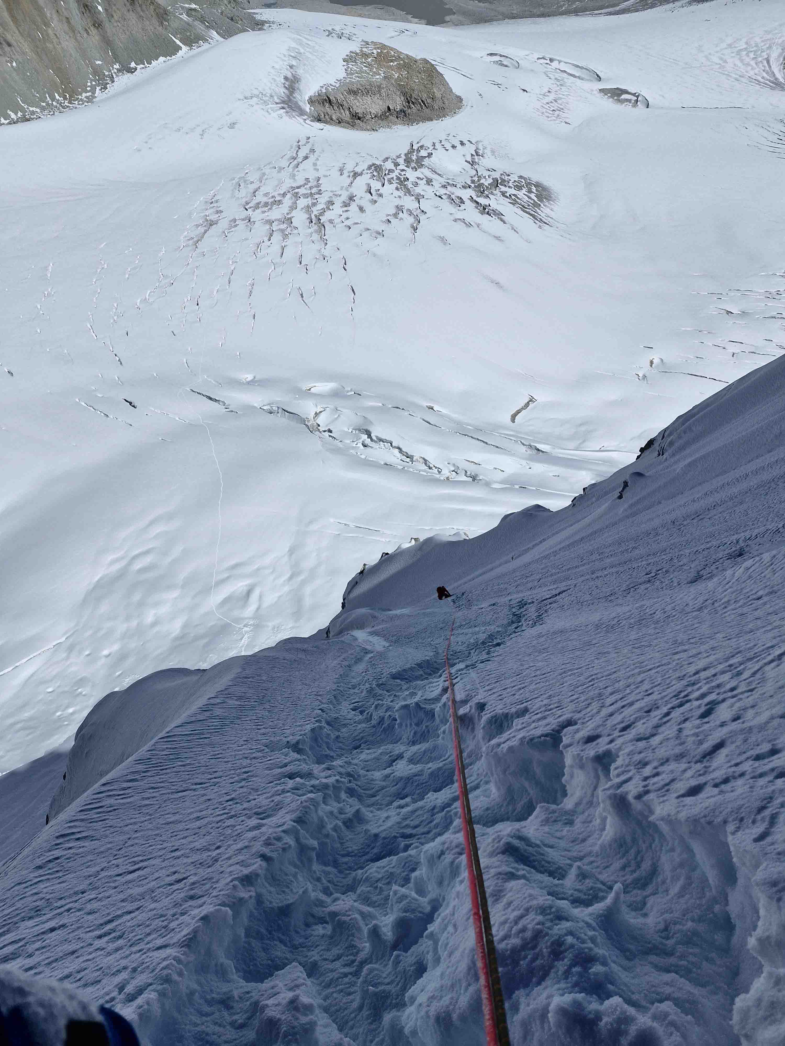 Als laatste tocht hebben Florian en Alexander een poging op de aantrekkelijke noordwest kant van P. 6222 gemaakt. Helaas had Florian een opkomende voorhoofdsholteontsteking, die erger werd naarmate we hoger kwamen. Na een koud en oncomfortabele nacht onder de wand, besloot Florian af te dalen. Alexander is nog gaan kijken bij de wand, maar werd tegengehouden door een uitdagende bergschrund. Dit markeerde het einde van het klimmen, en 1 dag later is de afdaling naar Simikot begonnen.