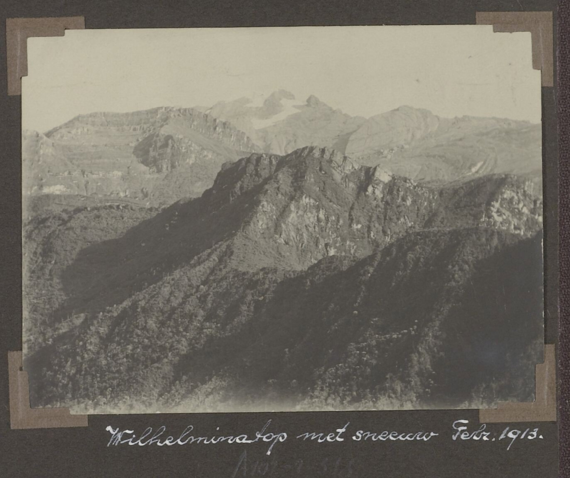 Voor de beklimming van de Wilhelminatop legde het expeditieteam meerdere bivaks aan, waaronder het Meerbivak op 3585 meter en Rotsbivak op 4300 meter hoogte. Na een moeilijke klimpartij werd op 21 februari 1913 de Wilhelminatop (4750 meter) bereikt. Voor de Dajaks, die nog nooit sneeuw hadden gezien, was het een bijzondere ervaring: ze bekogelden elkaar met sneeuwballen en wilden sneeuw bewaren om het te laten zien aan de andere Dajaks die waren achtergebleven. Herderschee en Hubrecht bleven nog een aantal dagen ter plaatse om observaties en metingen te verrichten, terwijl Versteeg en de meeste dragers onmiddellijk weer afdaalden.