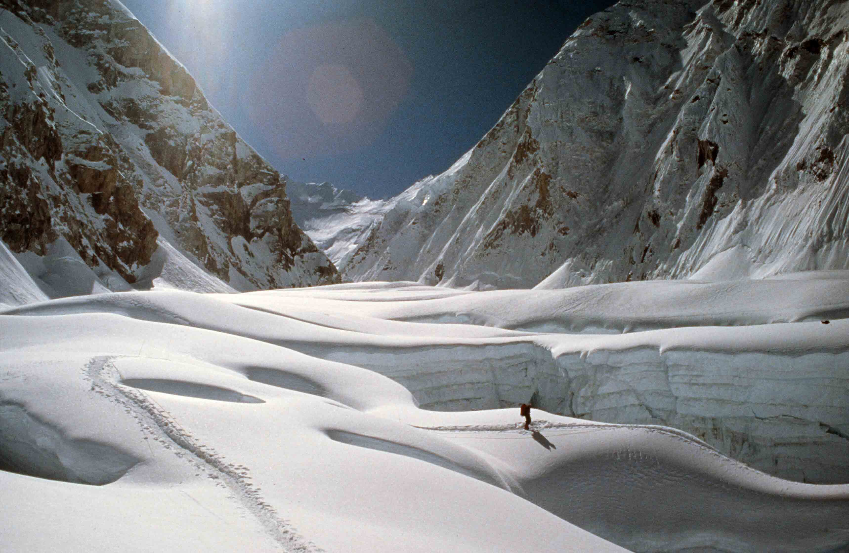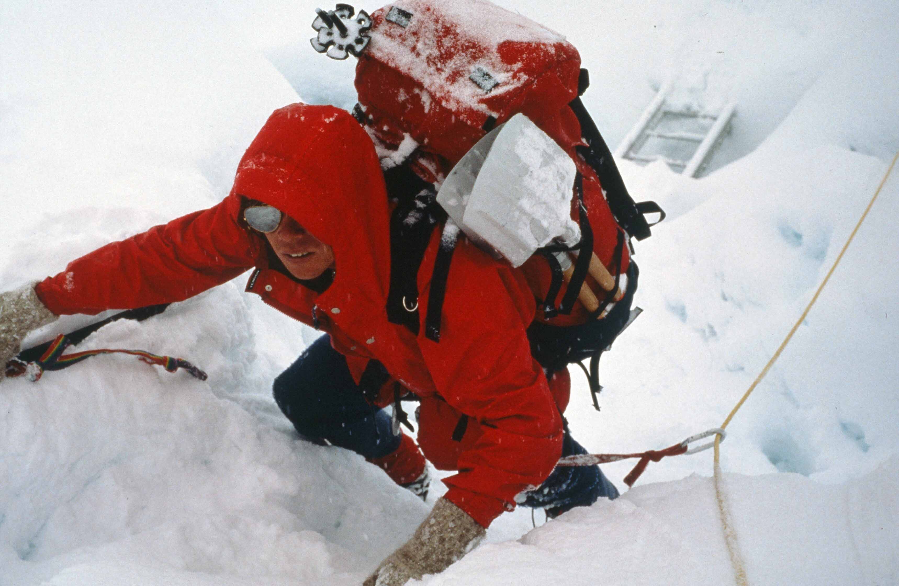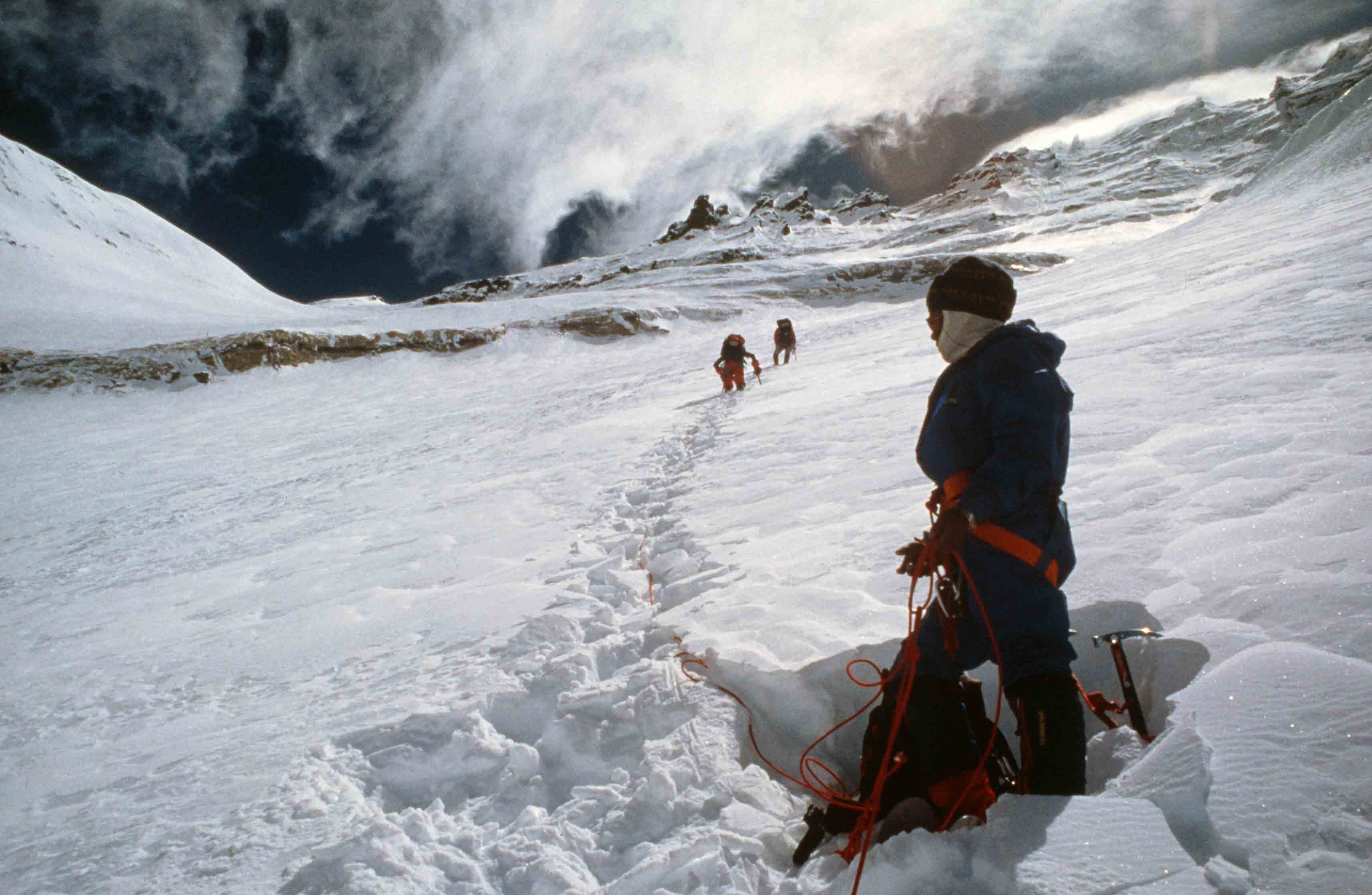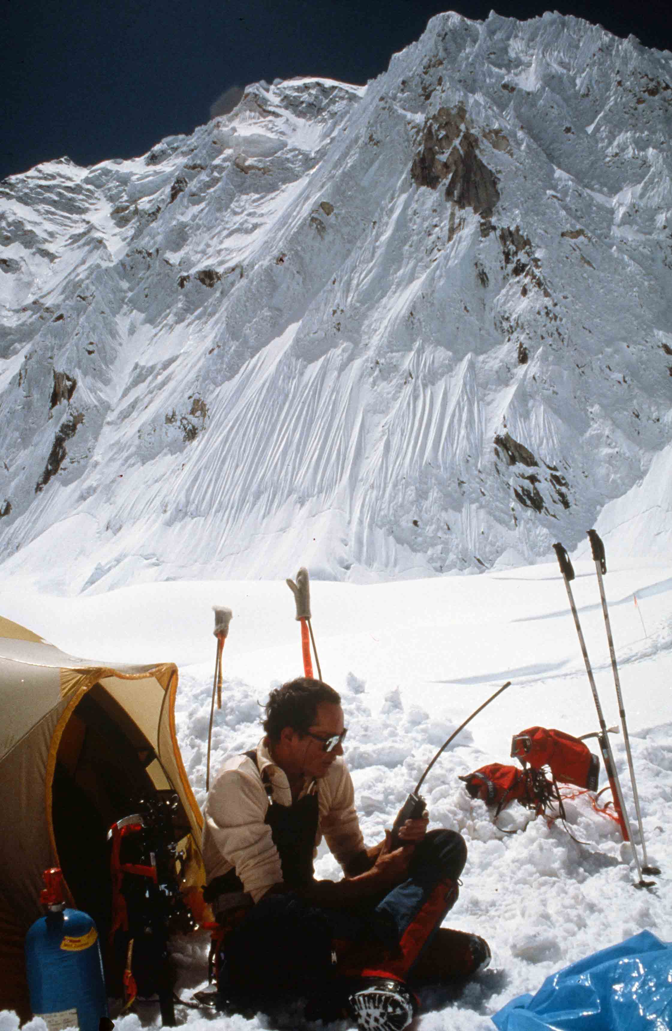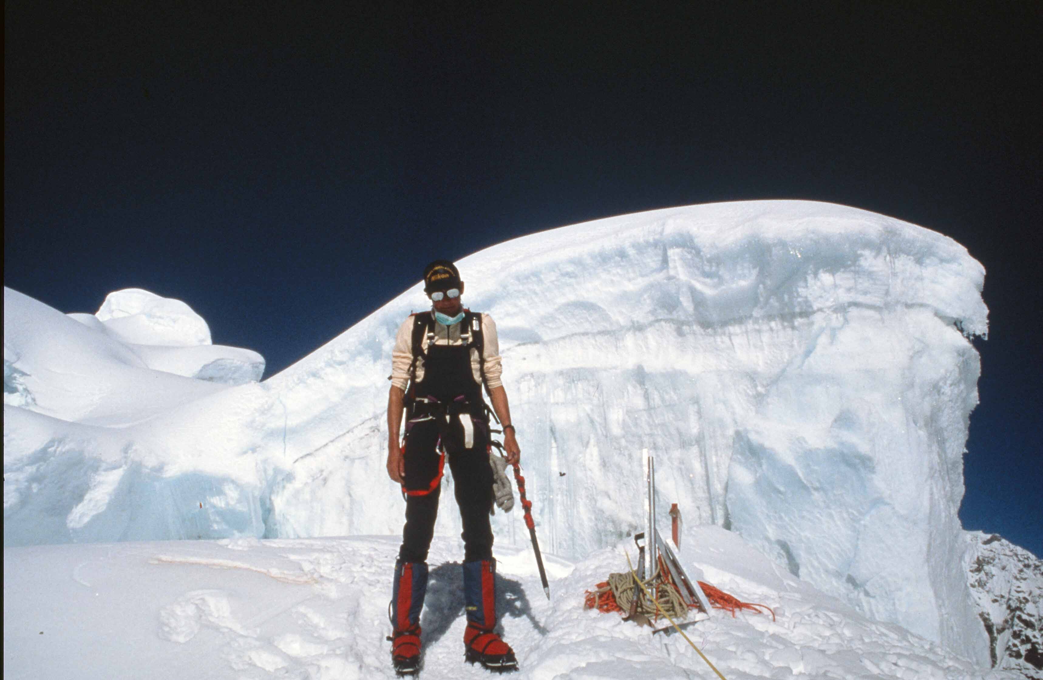 “Ik ben met Mariska (Mourik) tot onder de Zuidtop geweest, 200 meter. Met Ganesh op de Zuidtop en daar hebben we gestaan en foto’s gemaakt en daar onder andere de microfilm begraven. En ik ben zelf alleen doorgegaan naar de Hoofdtop. Ganesh heeft me nagekeken tot ik zover was en is toen weer omgedraaid en is voor mij uit teruggegaan. Ik heb wel degelijk de Hoofdtop ook beklommen, over.“