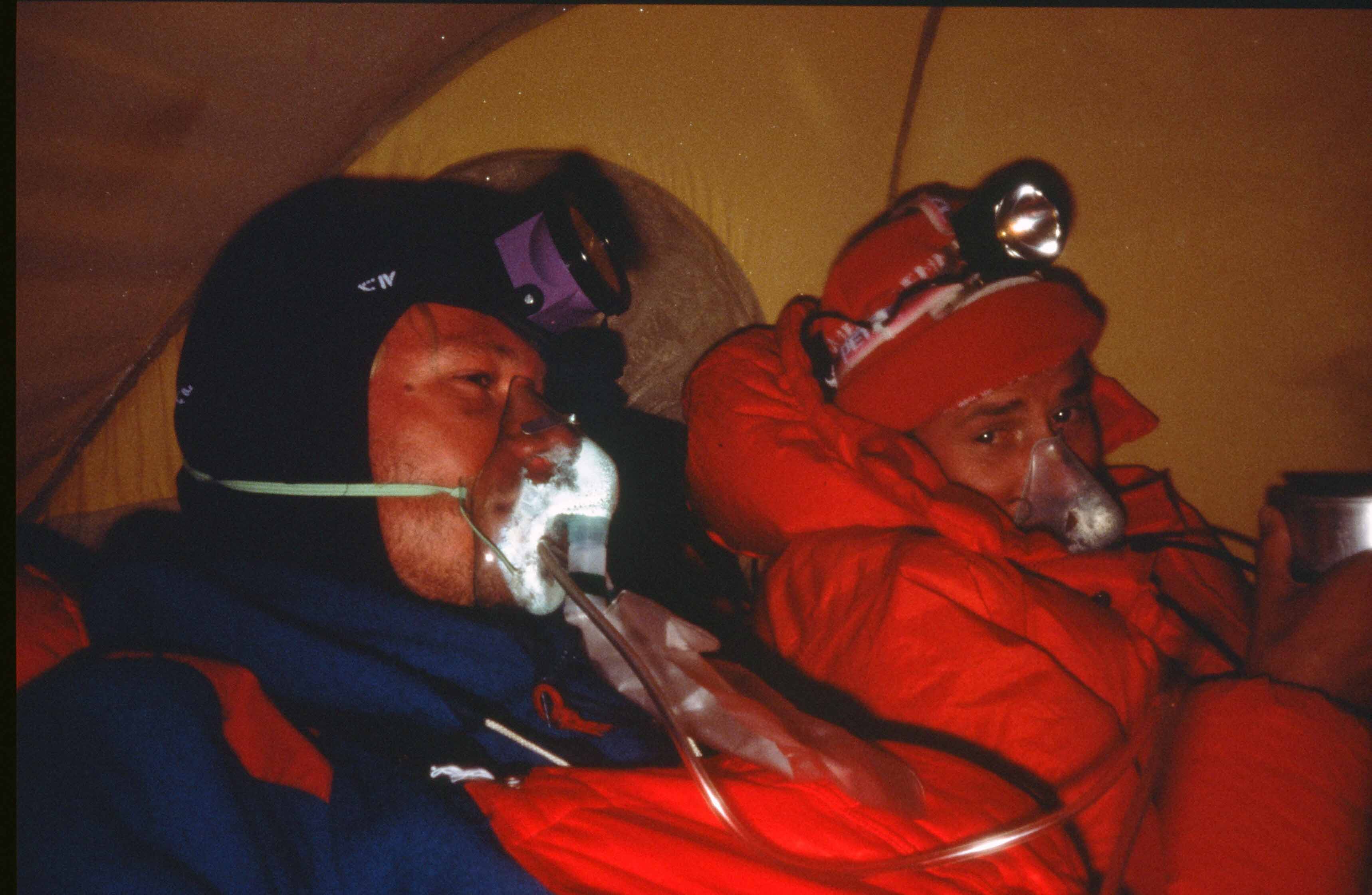 “Herman, ik hoor of versta je alleen als ik de squelch-knop indruk, daarom zal ik kort zeggen wat we gedaan hebben. We hebben de Zuidtop van de Everest bereikt, en het zadel tussen de Hoofdtop en de Zuidtop. Toen we op dat zadel waren stortte het gedeeltelijk in en toen zijn we gauw teruggegaan omdat de tijd over was.”